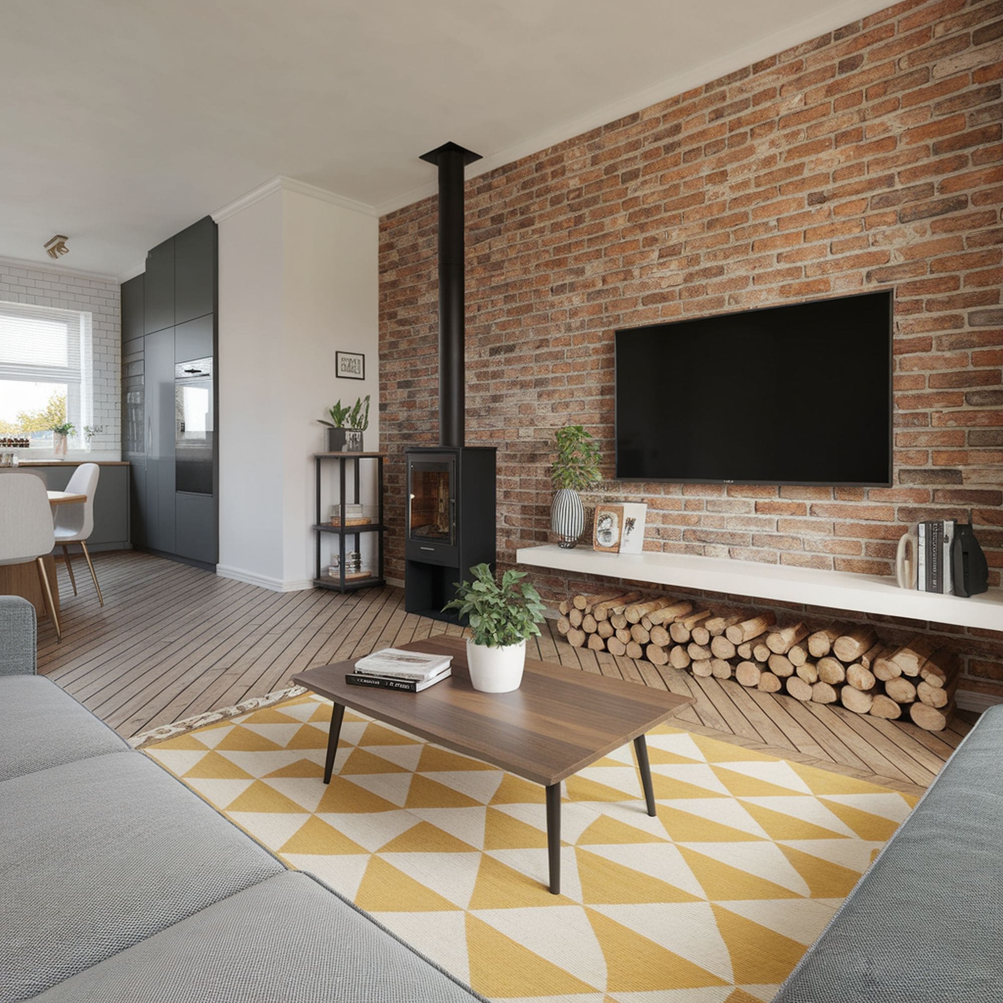 A somewhat unexpected choice if you wish to paint your brick wall is to go for a black wall. This is the kind of beautiful statement that gets the conversation going with your guests. White or gray tones can fit nicely in the kitchen if you wish to retain a more modern look. More vibrant hues could be a better match for the living room where they can brighten up the room.