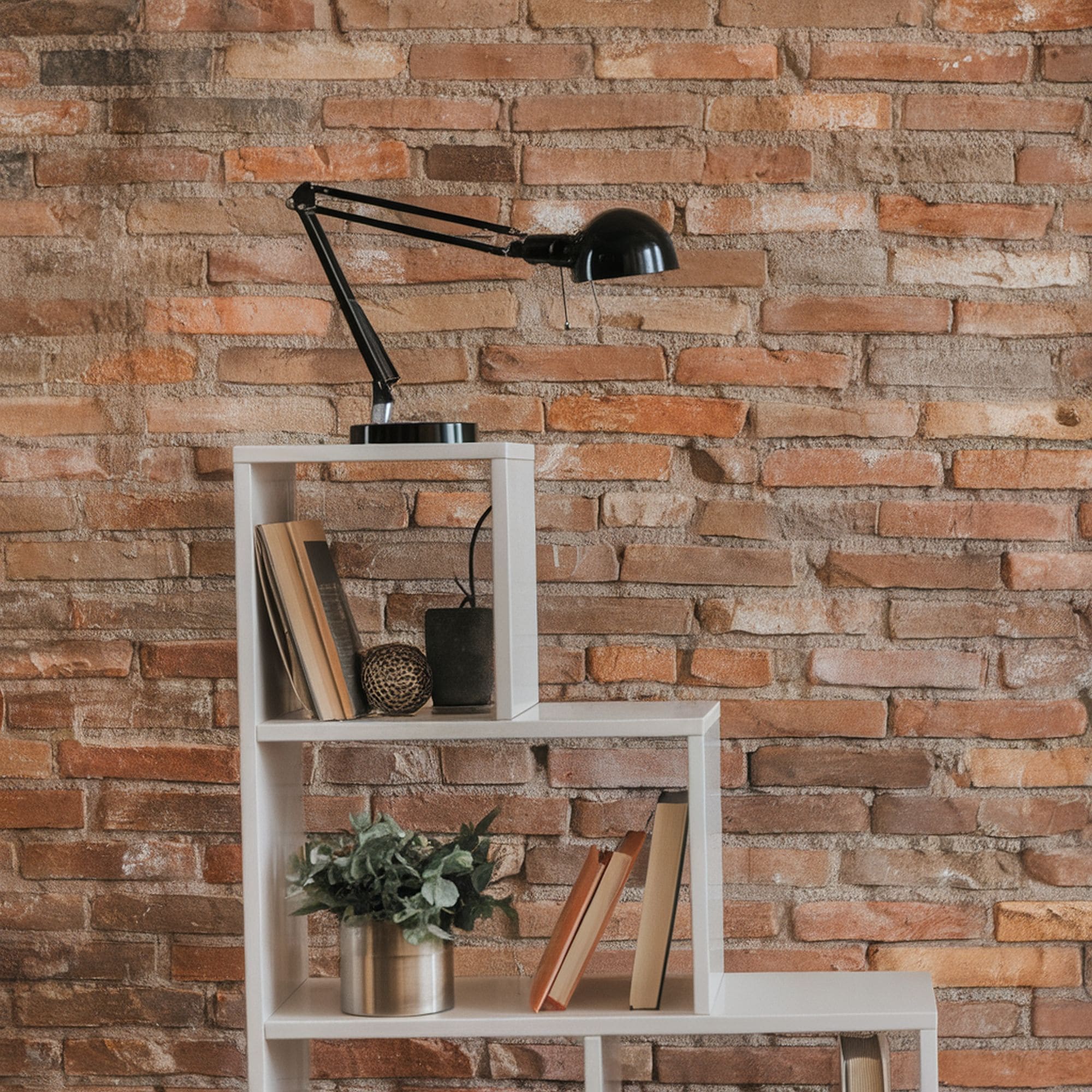 A much cheaper option is to simply get a brick print wallpaper. There are some realistic-looking models out there that are very easy to apply anywhere you wish to recreate the exposed brick wall look. Take a look at this self-adhesive brick print wallpaper from Amazon which offers two color choices – grey and red brick.