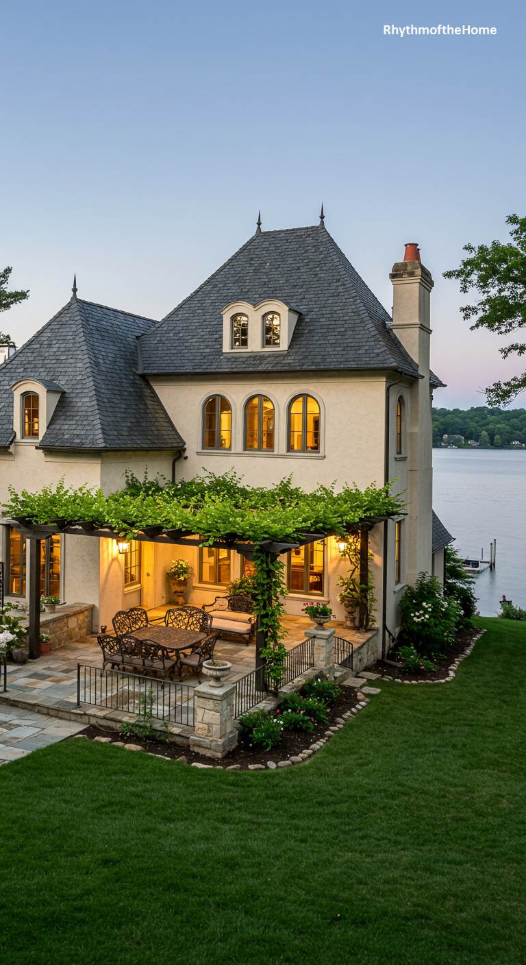 17. A Lakeside French Home at Twilight