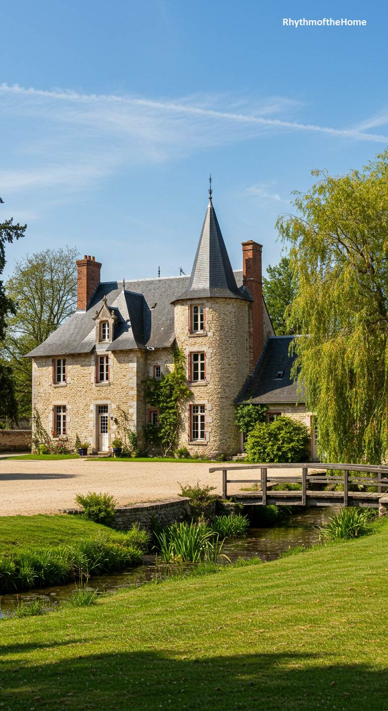 45. A Waterside French Home with a Bridge