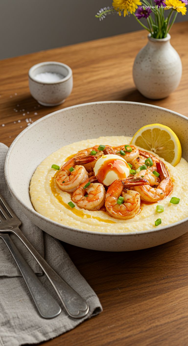 • Bacon-crisp: Cook 4 slices bacon until crisp; crumble and stir half into the grits. Cook shrimp in 1–2 tbsp bacon fat and finish with remaining crumbles.