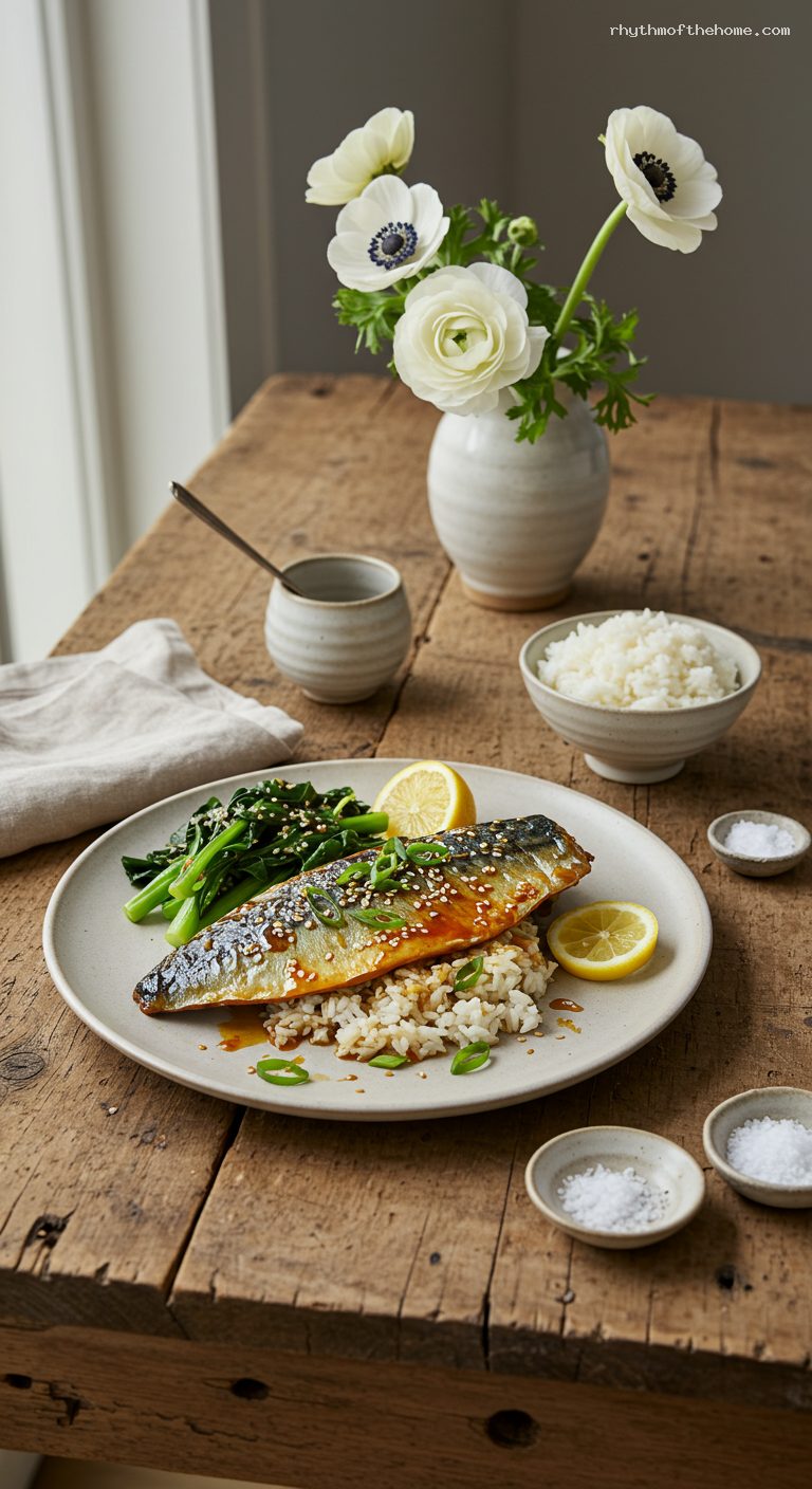 • Pantry: Mackerel fillets (seafood counter), awase or red miso, dashi (or dashi granules), sake, mirin, soy sauce, sugar, short-grain rice, kosher salt, toasted sesame seeds (optional)