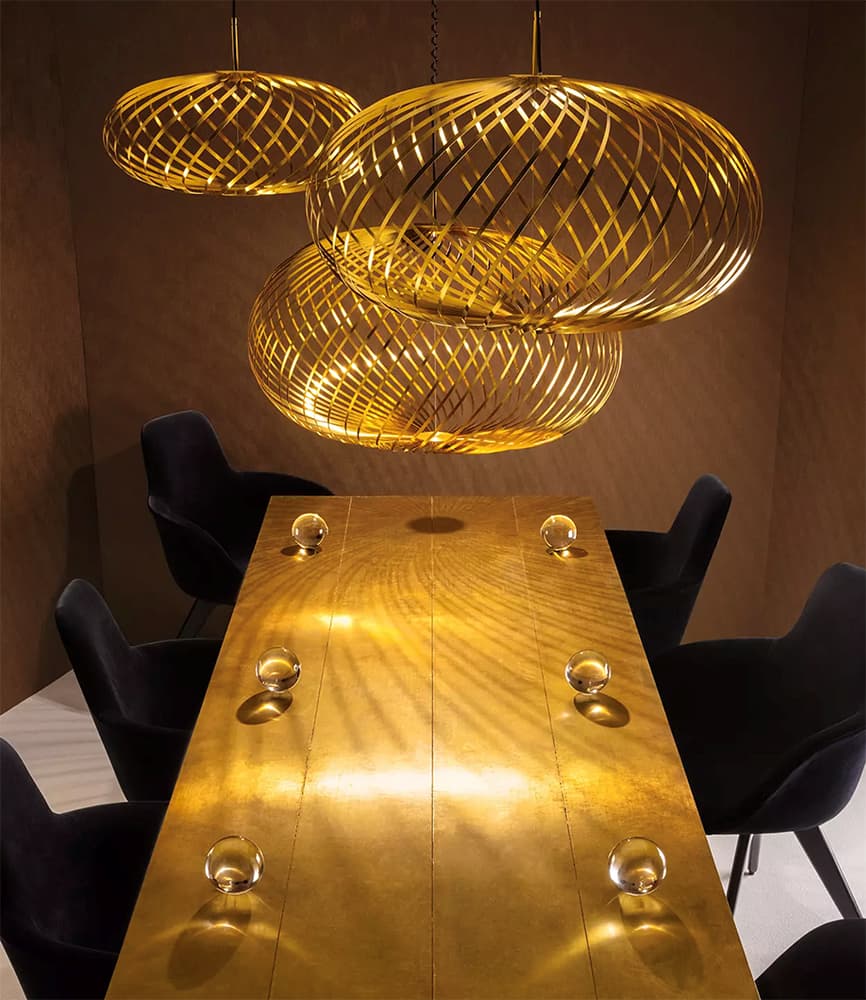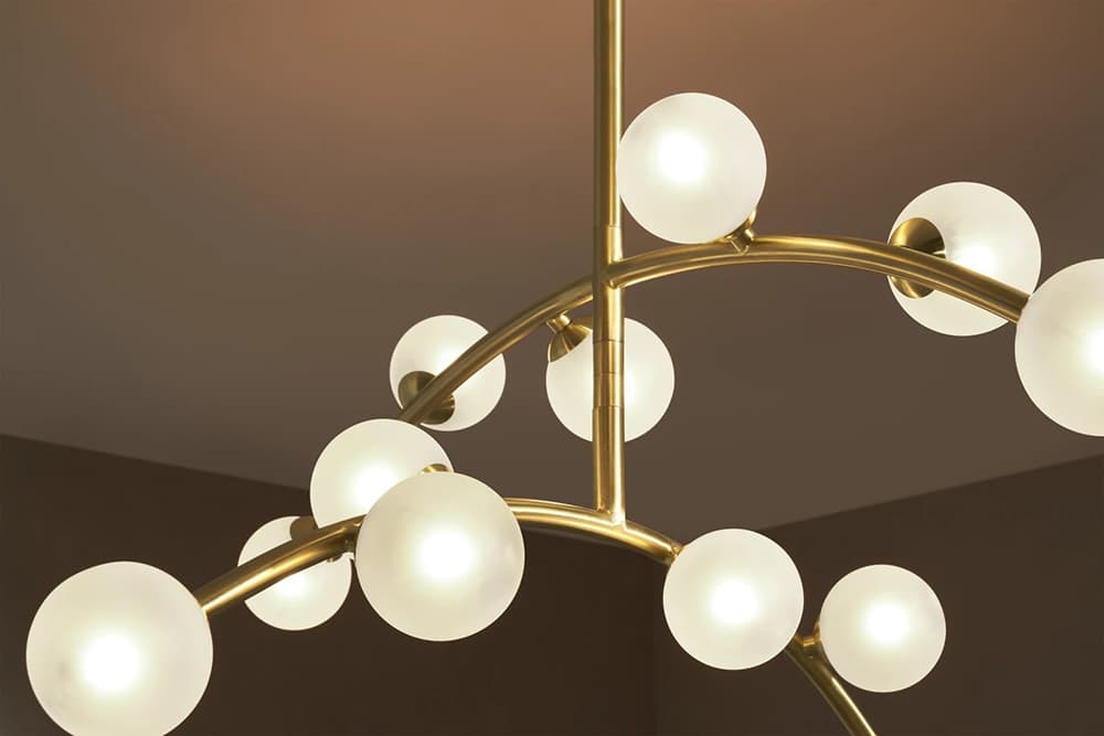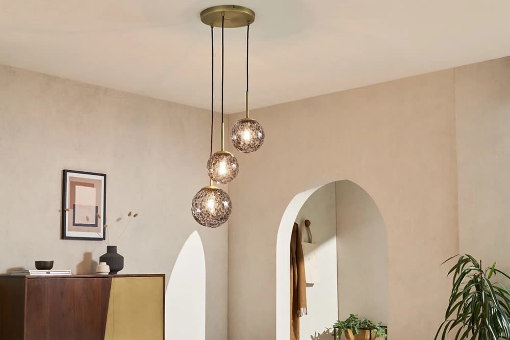 There’s almost something mystical about this minimalist chandelier pendant with its exquisite of three perfect luminous spheres that bring tortoiseshell glass together with brass. The three-light cluster creates a deliberate asymmetry of light and shadows that would brighten up any living space.