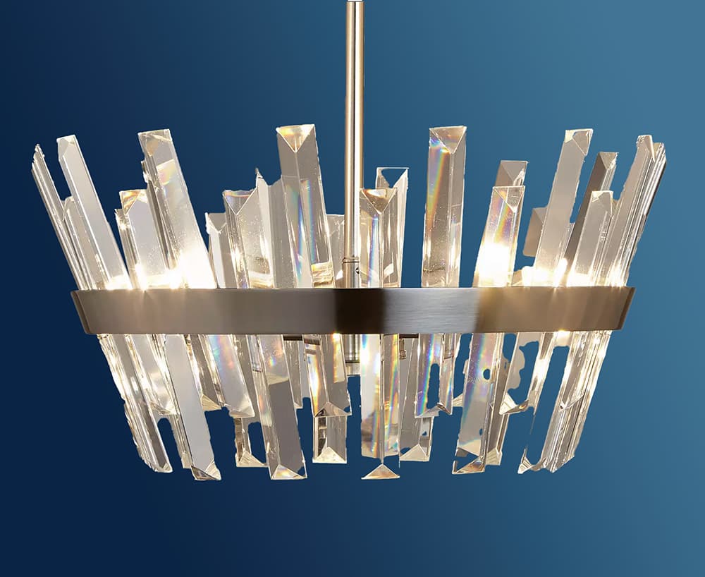 This might remind you of The Game of Thrones. The satin-finish metal band holds together these ‘iron throne’-like spikes of brilliant crystal rods. The light they cast is uniform and despite the diverse origin.