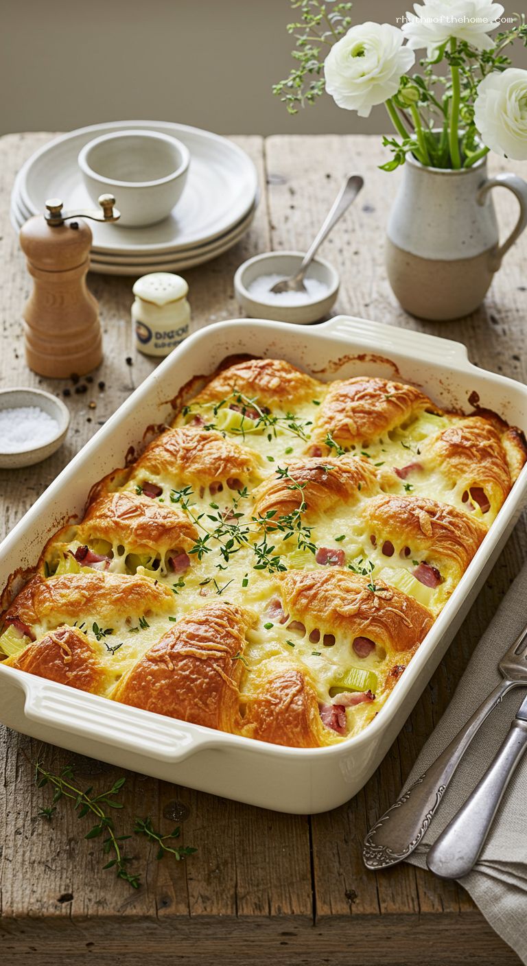 Ham, Leek, and Gruyère Croissant Bake – Closeup