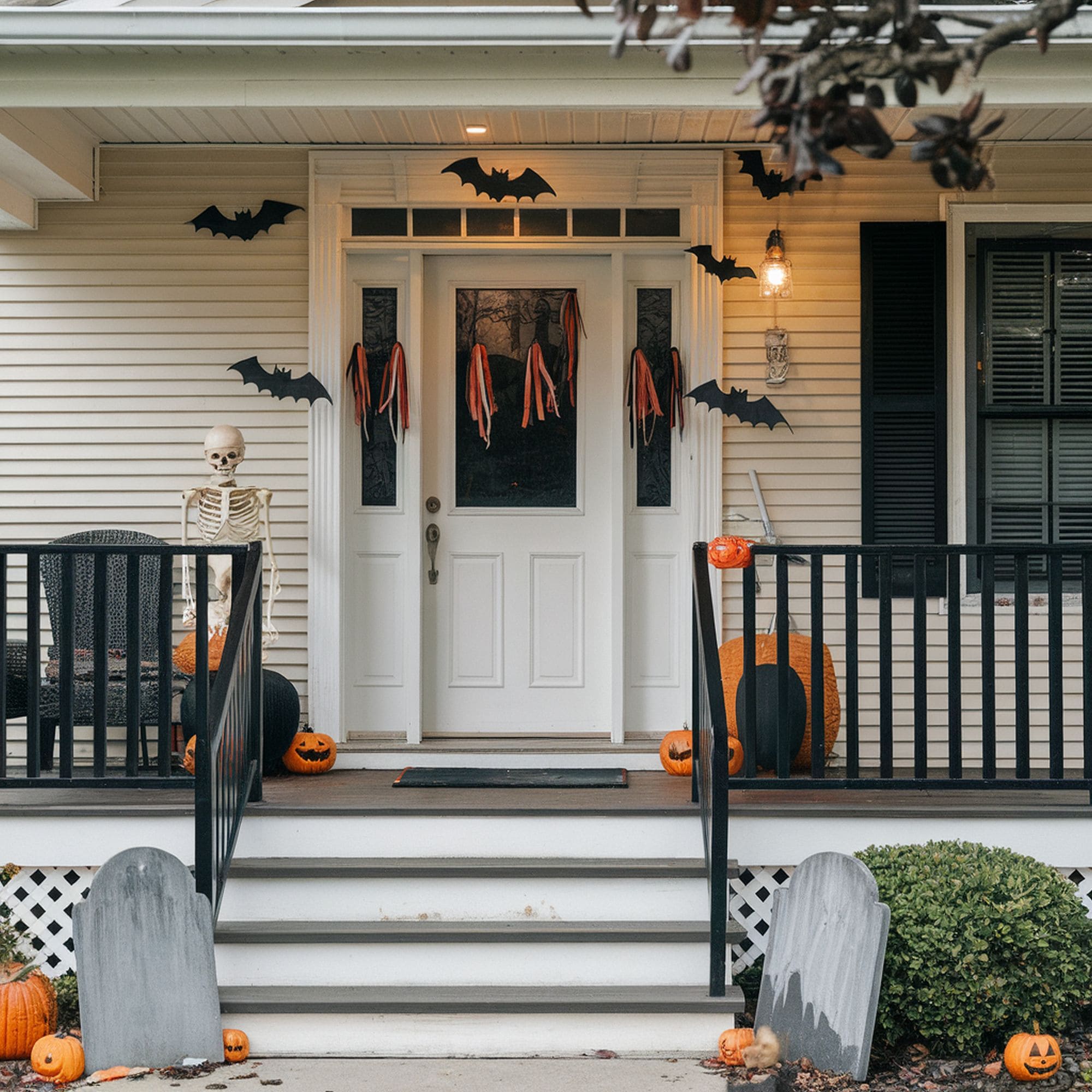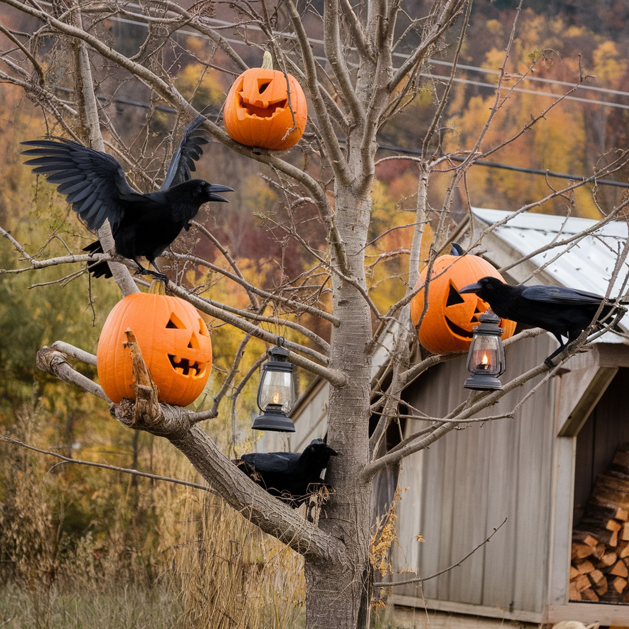 Bare-limbed trees will already create a spooky appearance by themselves on Halloween night. A small decorative detail you can add to them is a flock of faux black crows. You can pair the creepy birds with carved pumpkins or other decorations but make sure you avoid going over the top. Remember that trees offer quite a ghostly vibe and the black crows function more as an accent to enhance the overall theme. Check out these realistic crow props from Amazon if you don’t feel in the mood for DIY work.