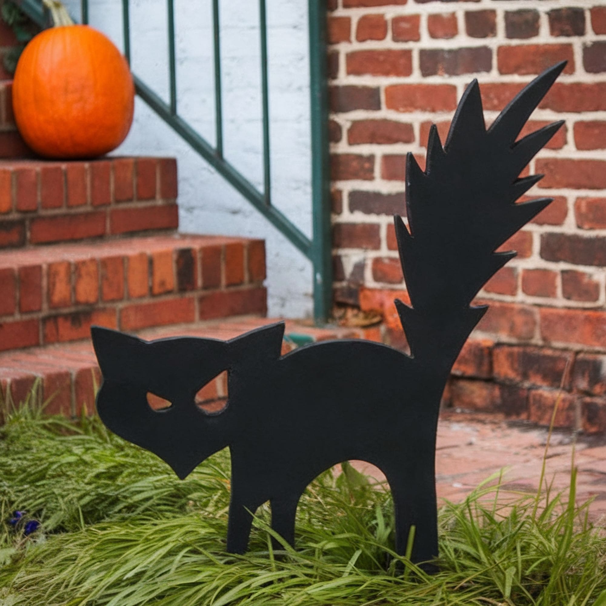 This menacing-looking black cat can be easily incorporated into any classic haunted Halloween décor. It can be used nicely for the walkway or can scare off guests when placed in the middle of the yard. You can build this black cat prop yourself from plywood that’s been cut after a template and painted. If this decoration seems too simple for your tastes, consider going for an animated inflatable cat that moves its head and needs an electrical connection. Find this decoration on Amazon.