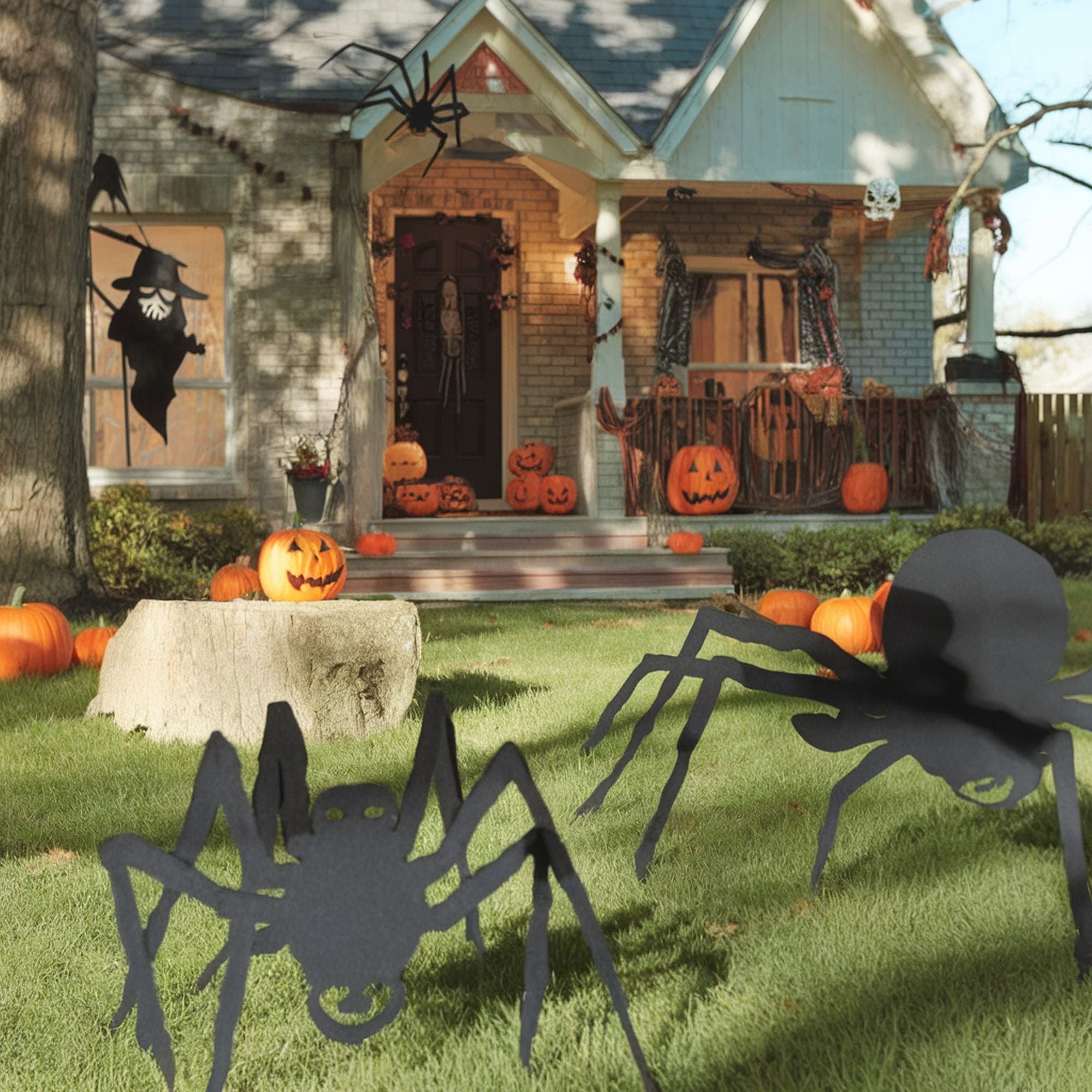Large spider silhouettes are sure to grab the attention of anyone visiting your garden on Halloween. The scare factor is high thanks to the way these decorations will make it look as if your house is visited by wicked monsters. Making these silhouetted decorations is fairly easy if you’re a fan of DIY work. You might even try to use the concept and make some abstract-looking ghosts or witches and obtain a similar visual effect.