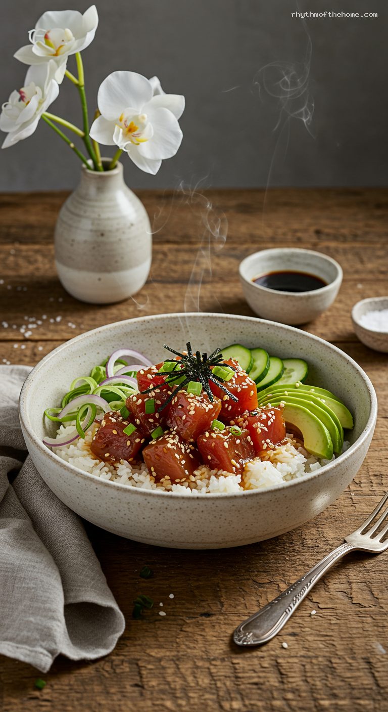 - Fast and weeknight-friendly: rice cooks while the tuna briefly marinates.