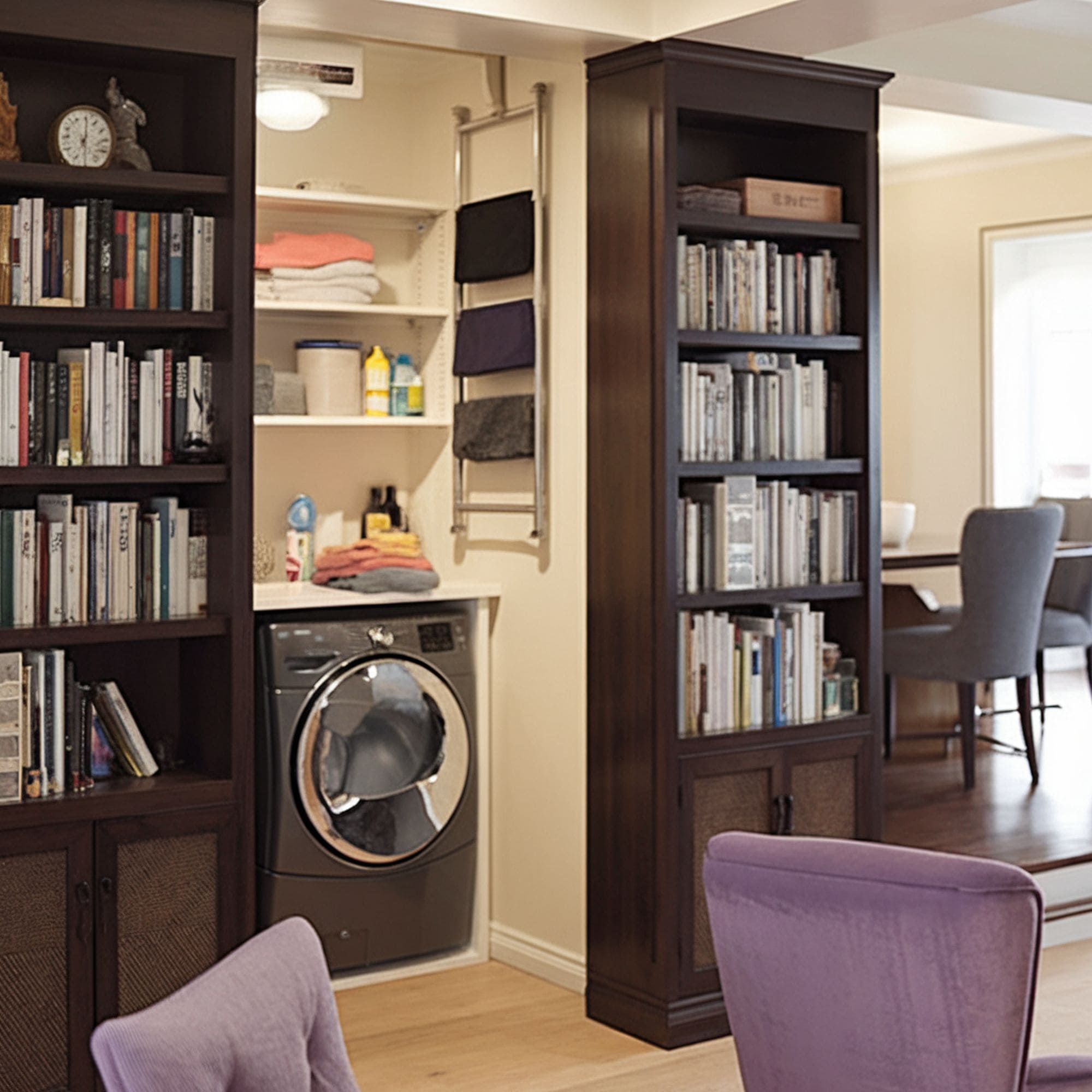 If you have other practical reasons for needing a secret door, such as hiding your laundry room, this could be it. The tiny room is disguised by the bookshelf, so your guests do not need to notice your laundry when they come in.