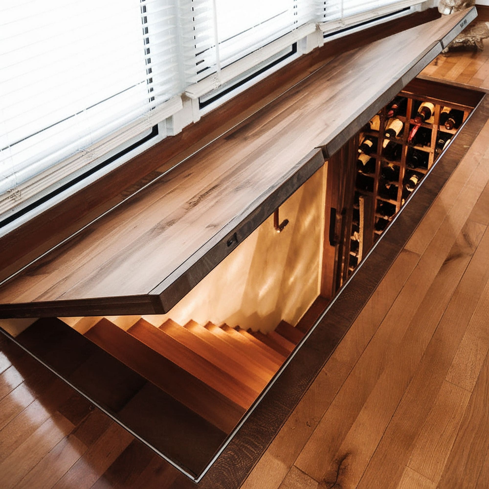 If you love your wine collection, you should consider having a wine cellar! This door is not inside the wall but, rather, inside the floor. You can turn the basement into a hidden cellar. If you want it to be even more disguised, you can further conceal the door. You can place a mat on top of it or even heavy furniture, such as a sofa.