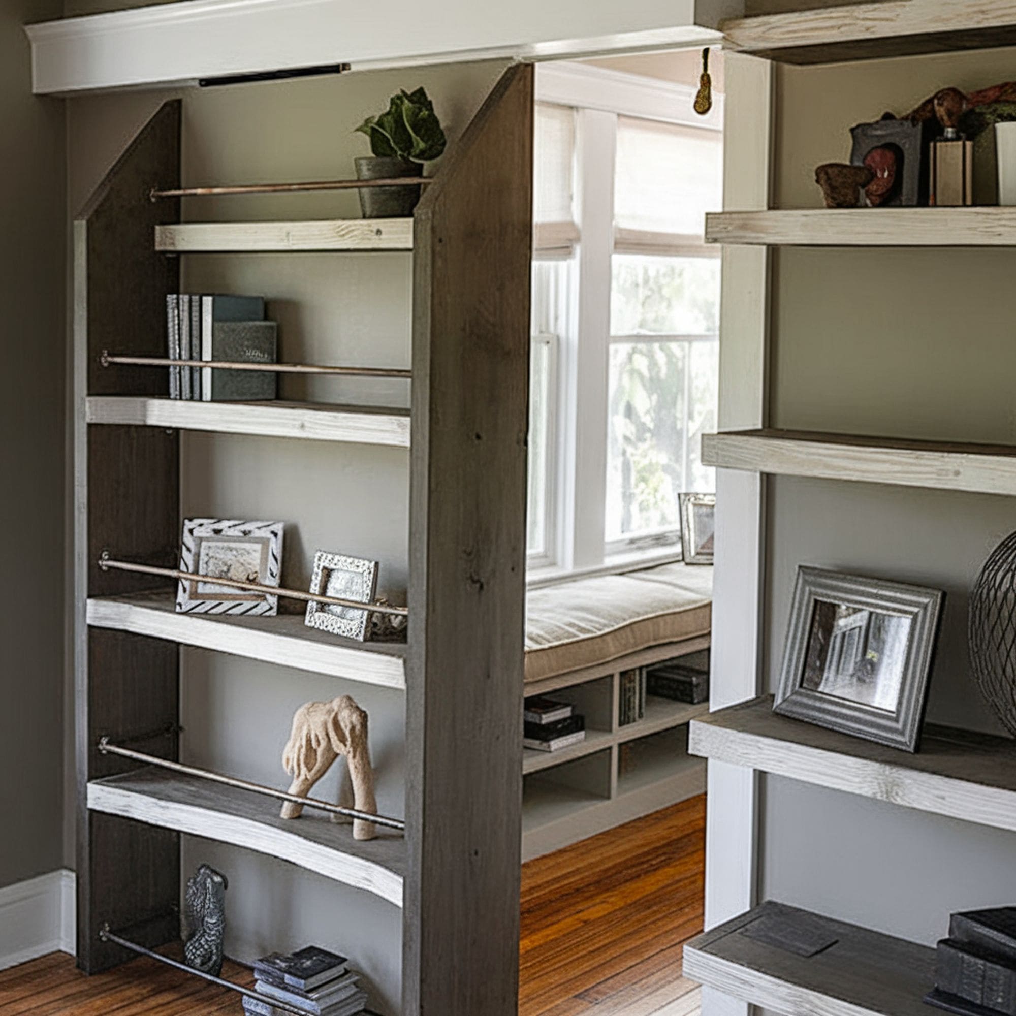 Whether you want to conceal the living room or your reading room, this idea further adds practicality and a rustic vibe to your space. It is a beautiful addition to any house, especially if you love books. You do not need to waste space, either, and you can choose this design to split a larger room without having to build additional walls or make major changes.