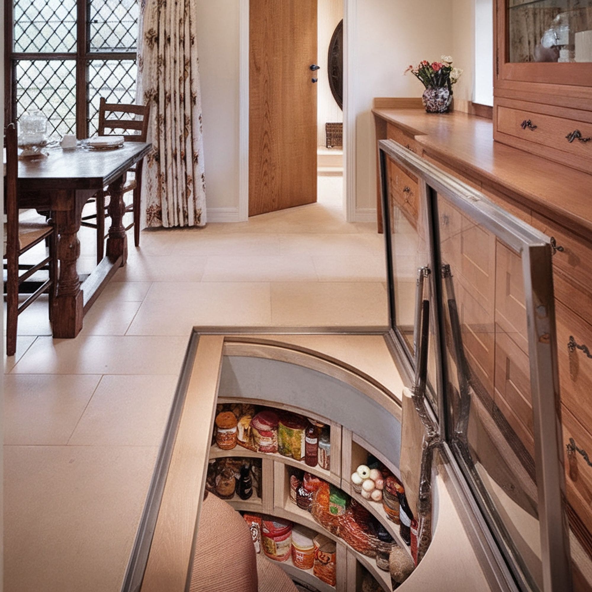 A pantry is an excellent addition to your home, so you will be well-stocked at all times. If you cannot find the space to create a traditional one, you can use a trap door to conceal it. If the space underneath is quite limited, too, go for a spiral staircase.