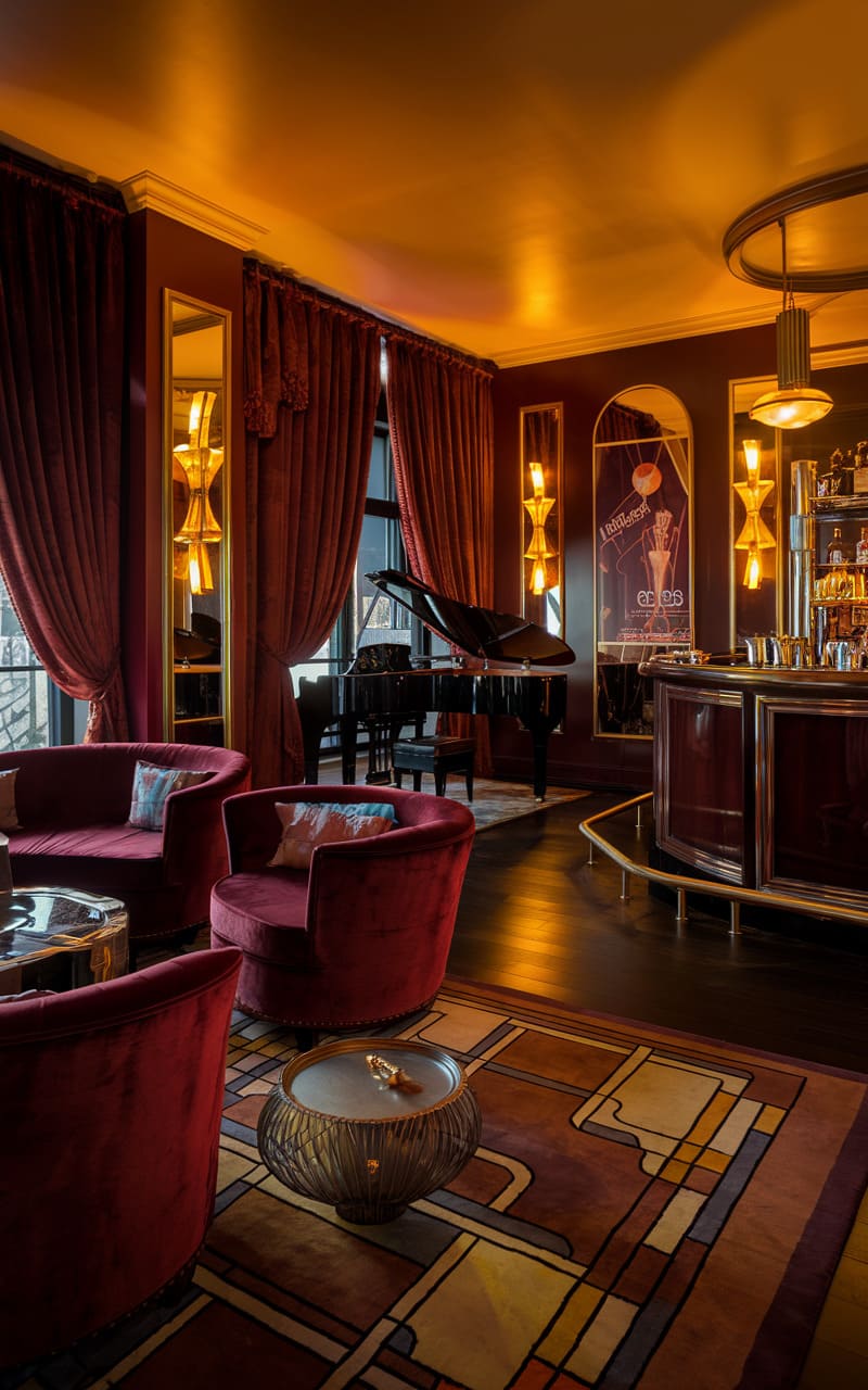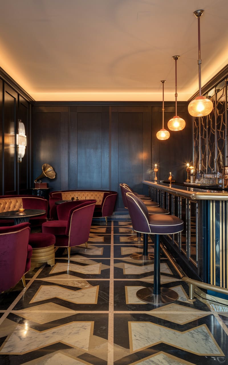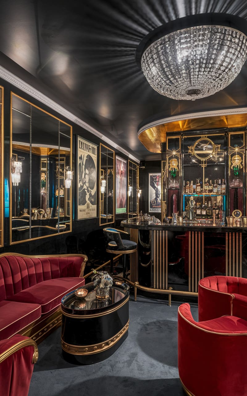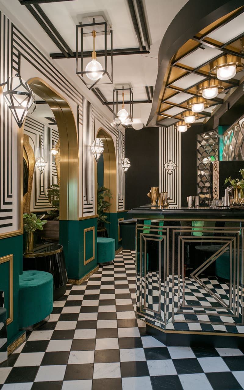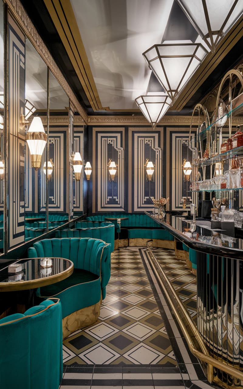 39. Art Deco Underground Speakeasy with Bold Geometric Patterns
