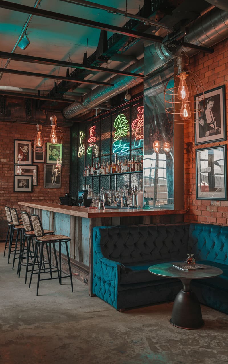 2. Industrial Loft Speakeasy with Exposed Brick and Neon Signage