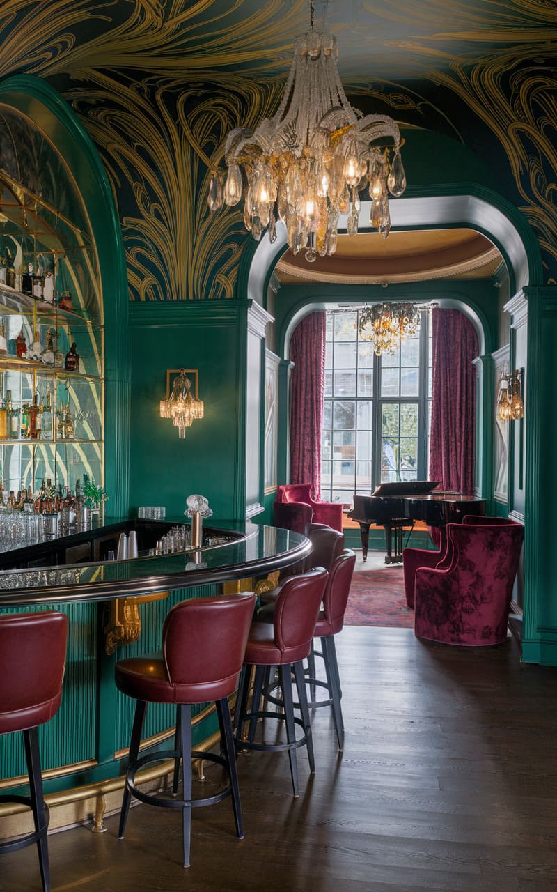 3. Gatsby-Inspired Speakeasy with Art Nouveau Flourishes