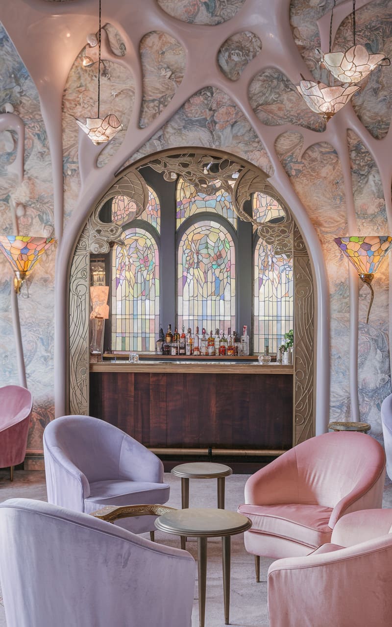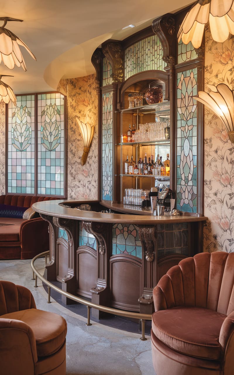 21. 1920s Art Nouveau Speakeasy with Stained Glass and Whimsical Details