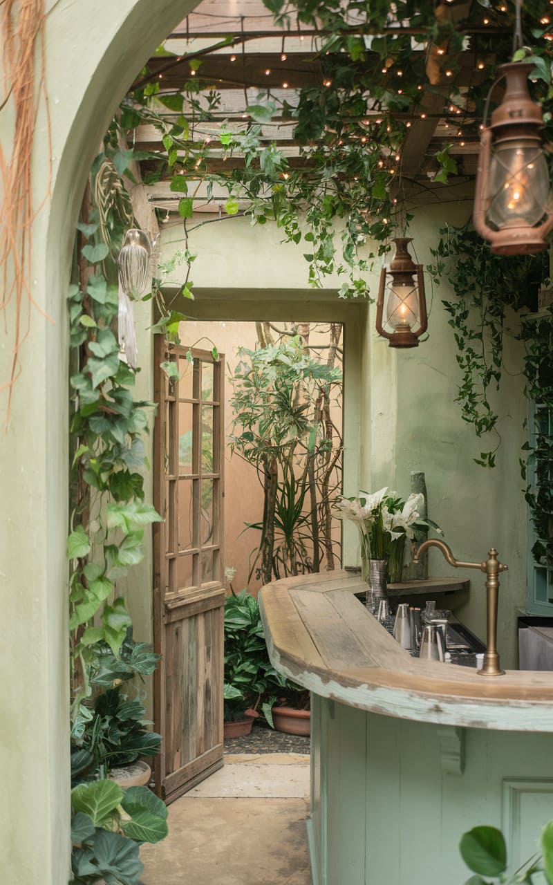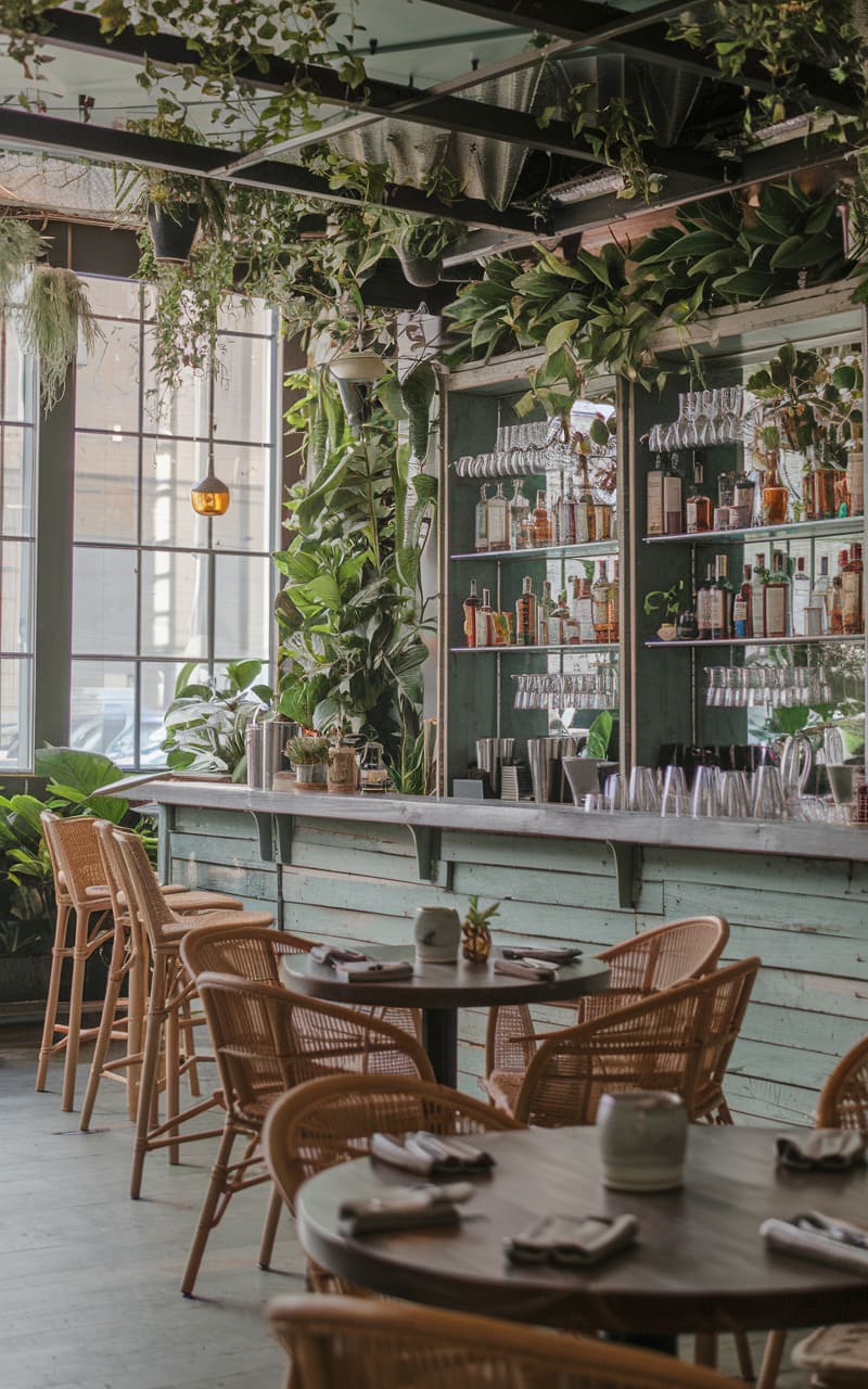 36. Artisanal Cocktail Lounge with Botanical Decor and Farm-to-Table Vibe