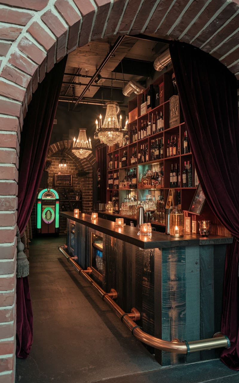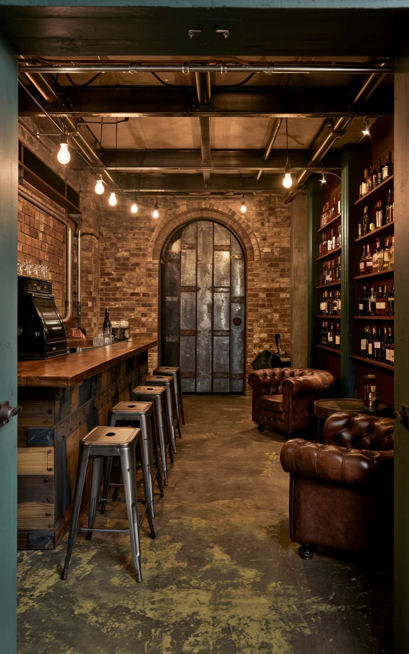 48. Industrial Chic Speakeasy with Exposed Brick and Raw Metal Accents