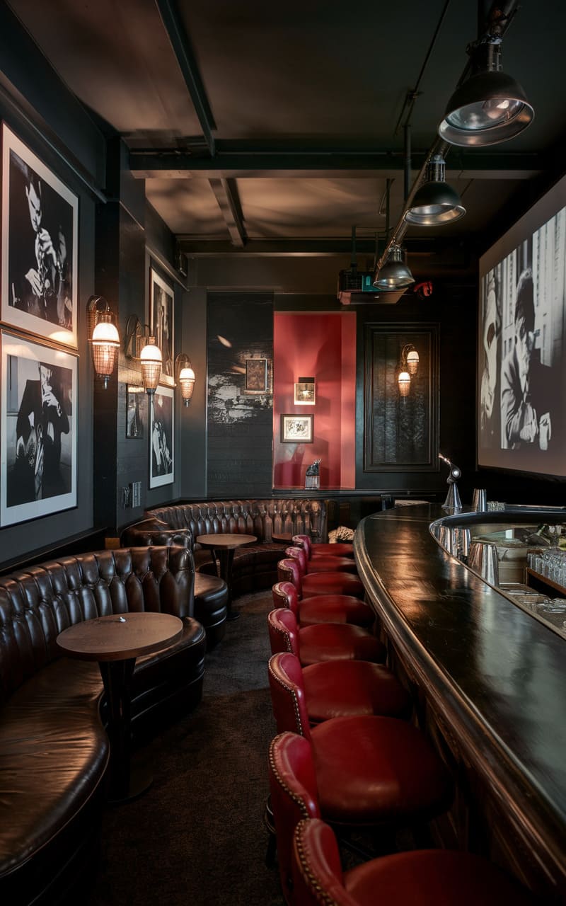 29. Cinematic Noir Speakeasy with Dramatic Lighting and Vintage Accents