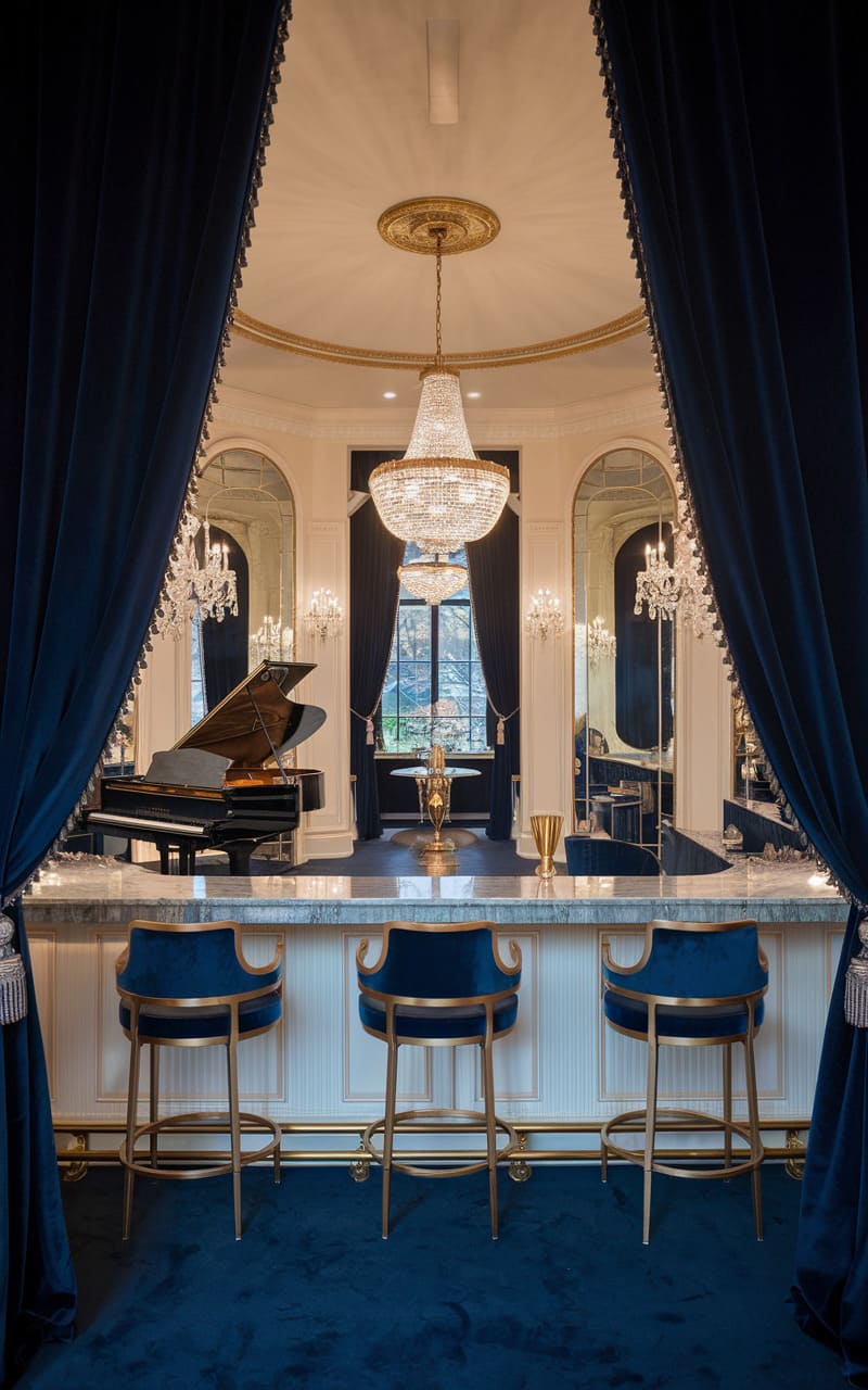 15. Midnight Blue Speakeasy with Moonlit Ambiance