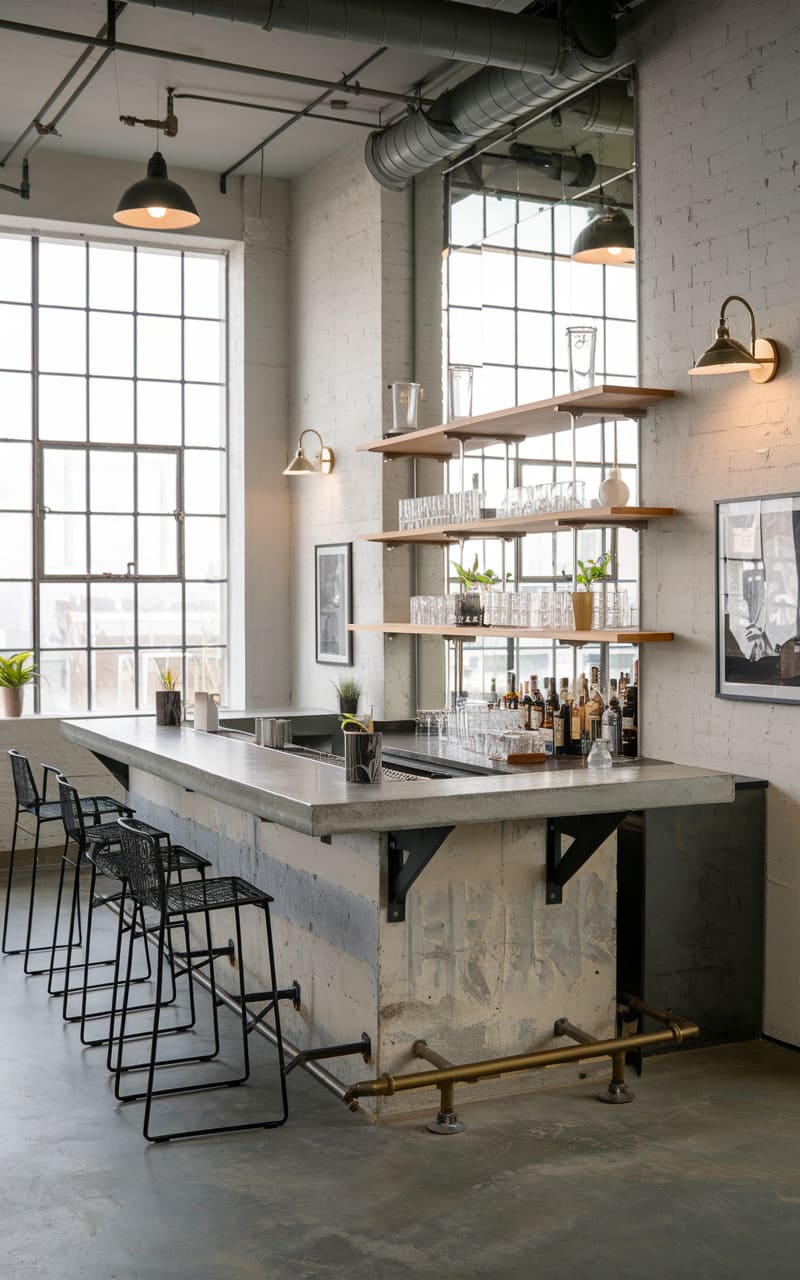 121. Industrial Loft Speakeasy with Open Shelving