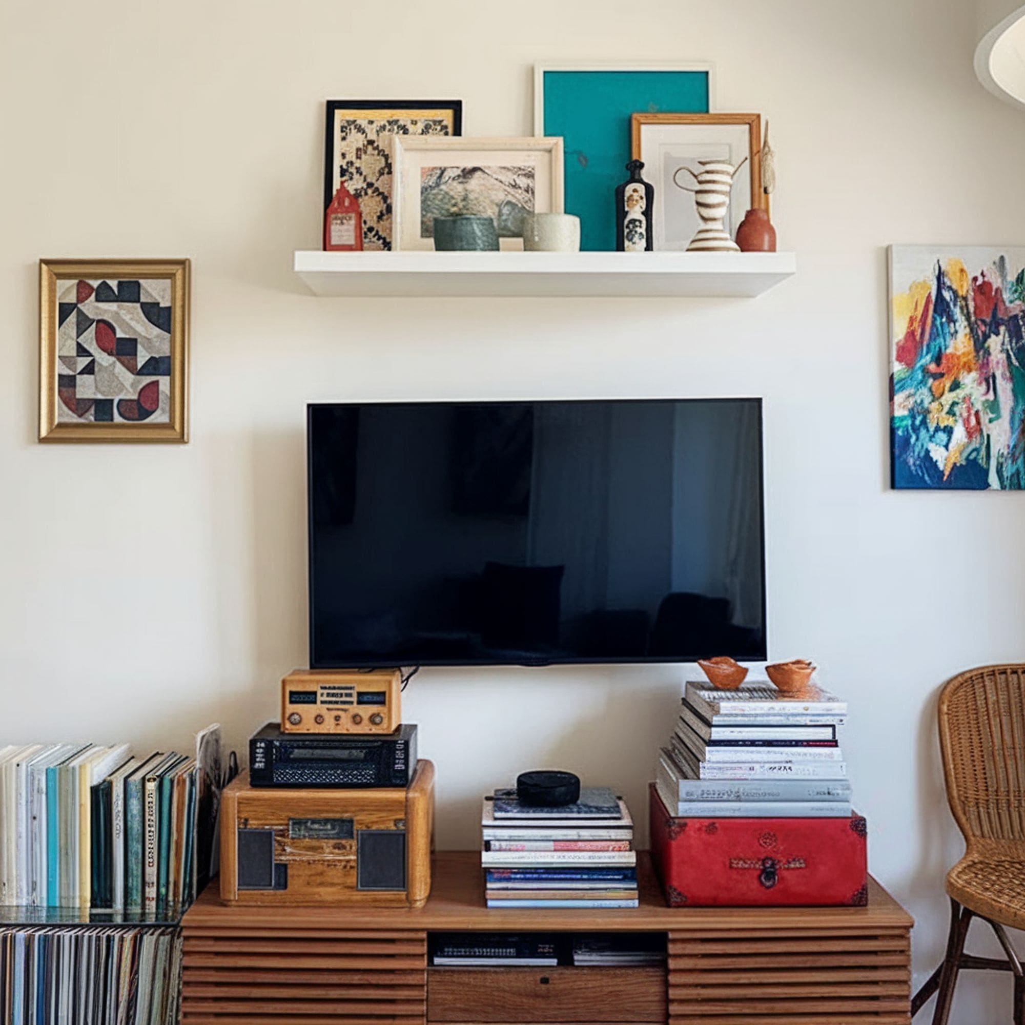 Instead of trying difficult methods to fully hide away the TV wires, simpler solutions may seem more appealing for some homeowners if they just want to create a strategic disguise. You don’t necessarily need to create the illusion of having a wireless TV mounted on the wall. It’s often enough to just rely on some stylish decorations to get the focus away from dangling cords.