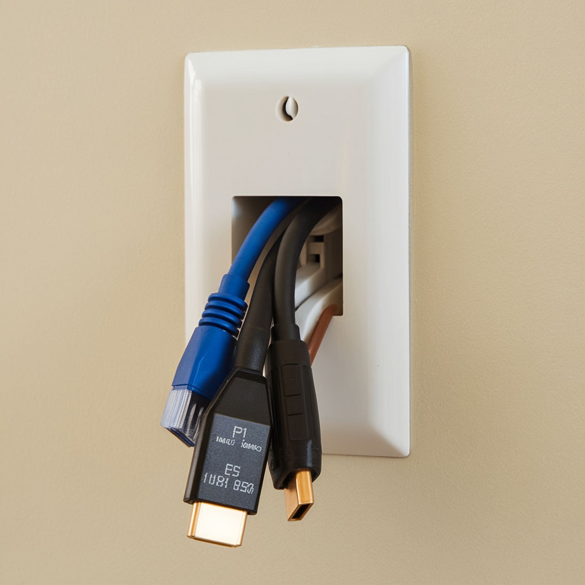 When it comes to keeping TV wires concealed, it’s safe to say that behind the wall is the most effective method. Unfortunately, it’s also among the most difficult solutions. The trick requires to use recessed cable plates like this one from Data Comm, available on Amazon. With the help of this convenient accessory, you will be able to keep the cables behind wall-mounted TVs organized and remove the clutter from the wall.