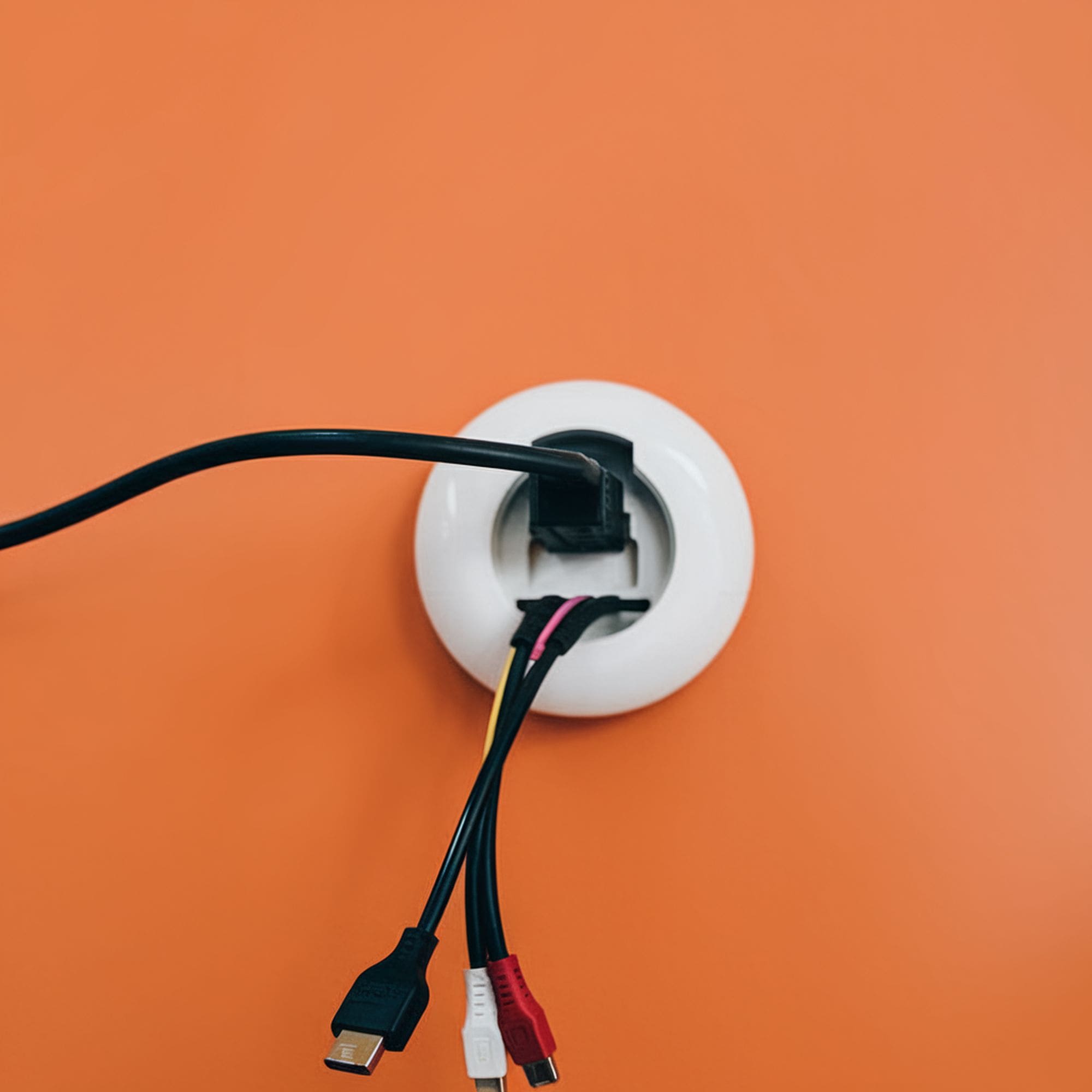 Organizing your cables with this kind of system can be done using a DIY installation but it’s usually recommended to use the services of an electrician to ensure a safe and correct installation of the wires. The good news is that most in-wall power systems arrive pre-wired to simplify the mounting process. The idea is to route your wires through new holes while keeping the wall clean and stylish.