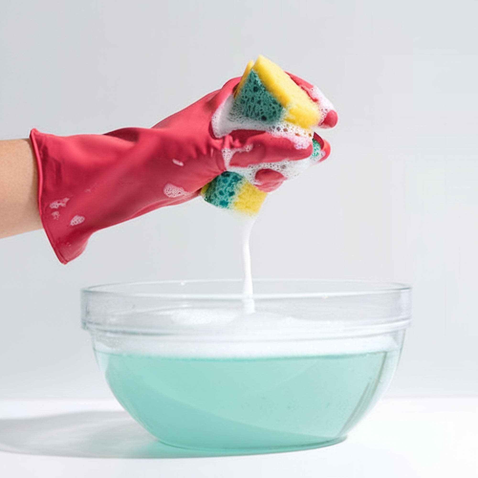 The next step is to mix the hot water with a generous amount of dish soap. It depends on the particularities of your situation, but consider premixing at least a couple of tablespoons. Avoid overdoing by adding the whole bottle or agitating the soap. You can also add the dish soap directly into the toilet bowl and pour the water separately but premixing seems to be more effective in most cases.