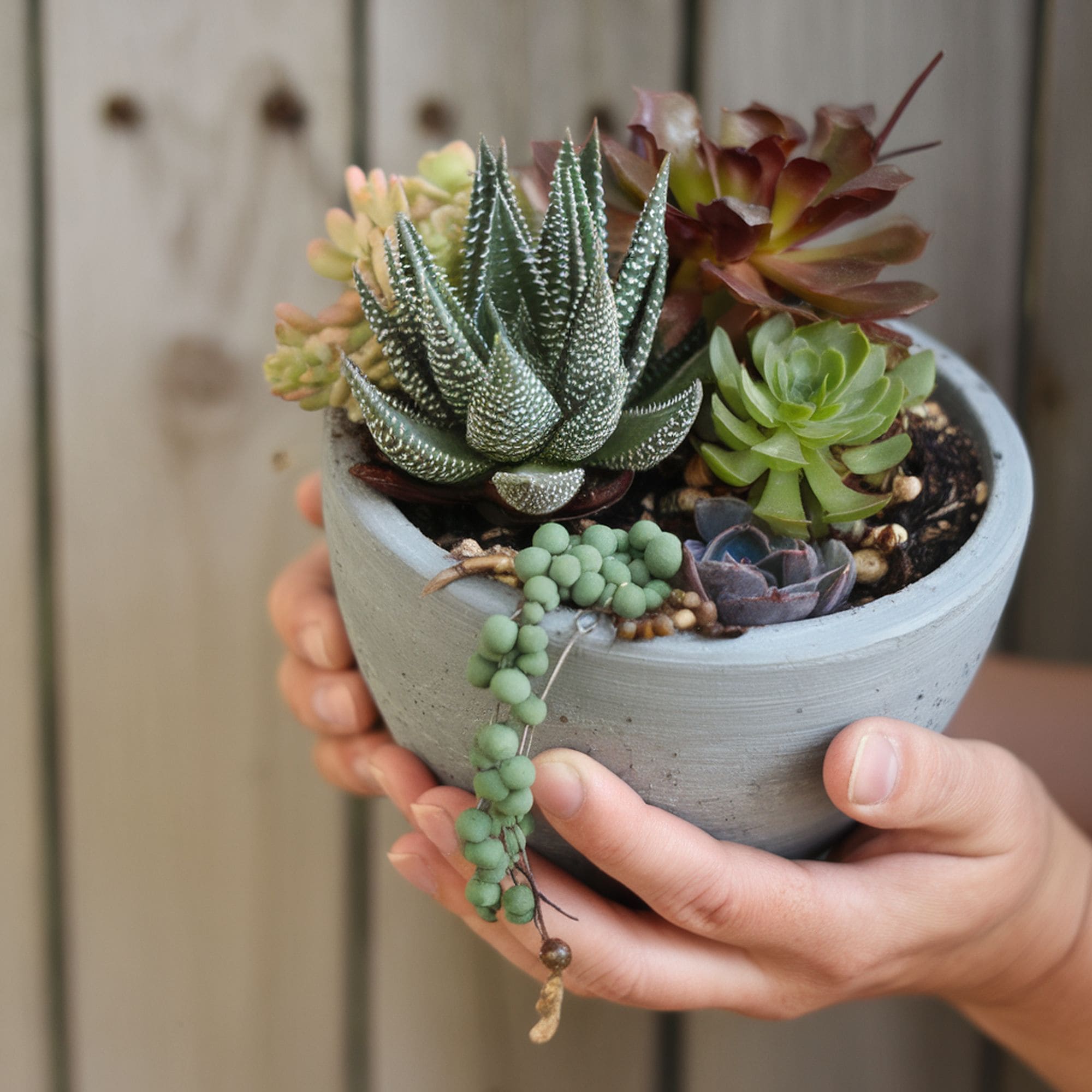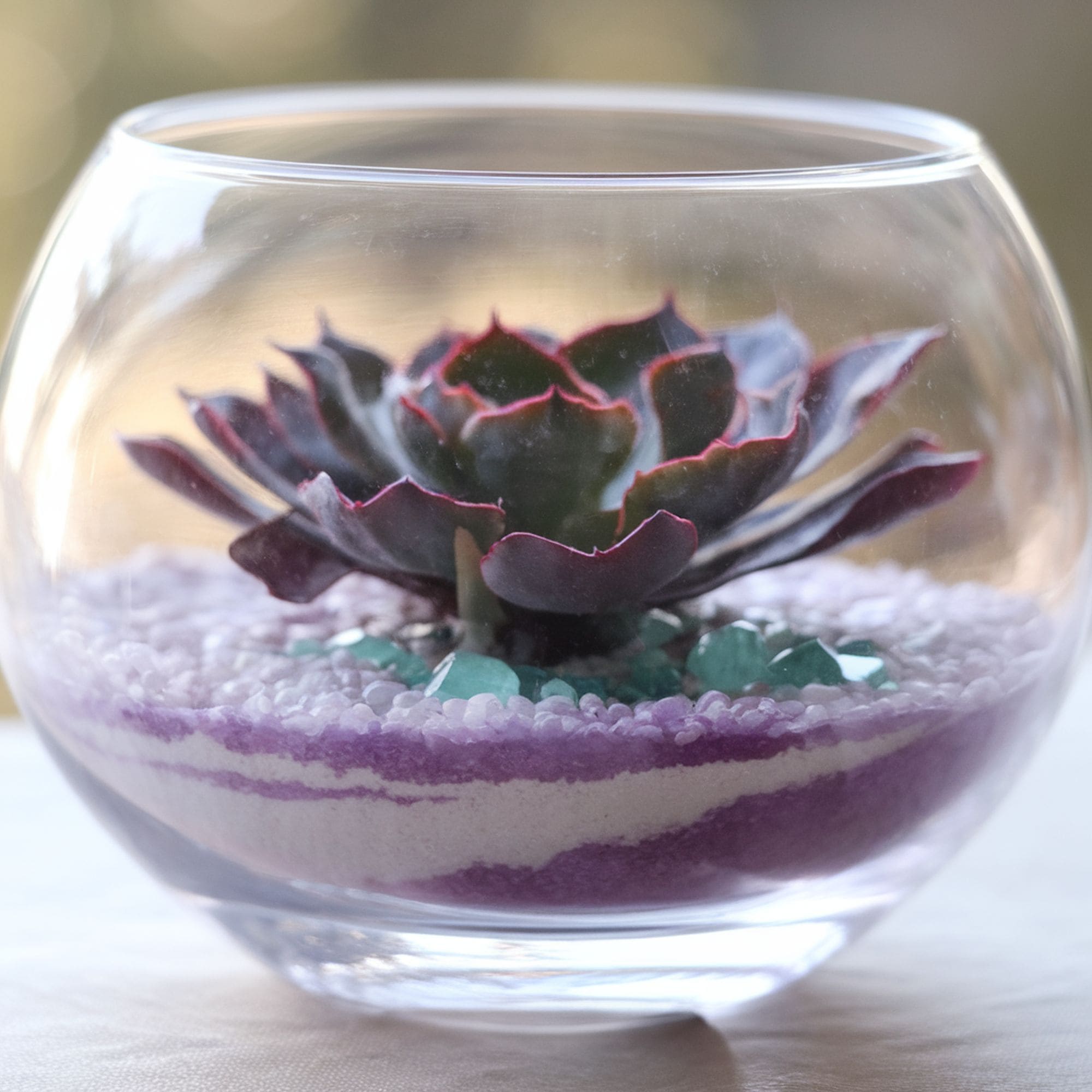 Many succulent lovers choose glass terrariums or other attractive pots to show off their plant’s beauty. However, keep in mind that these don’t offer proper drainage.