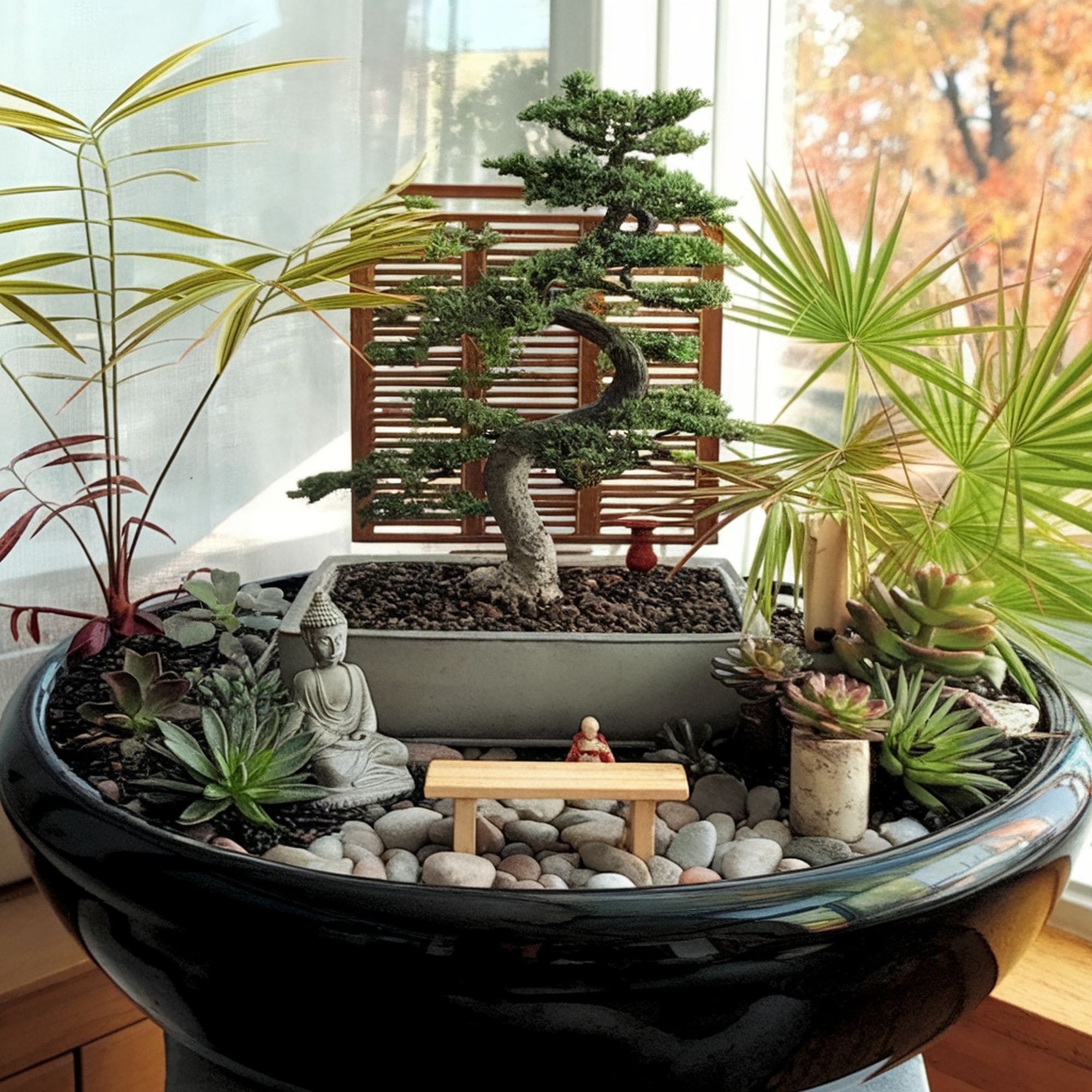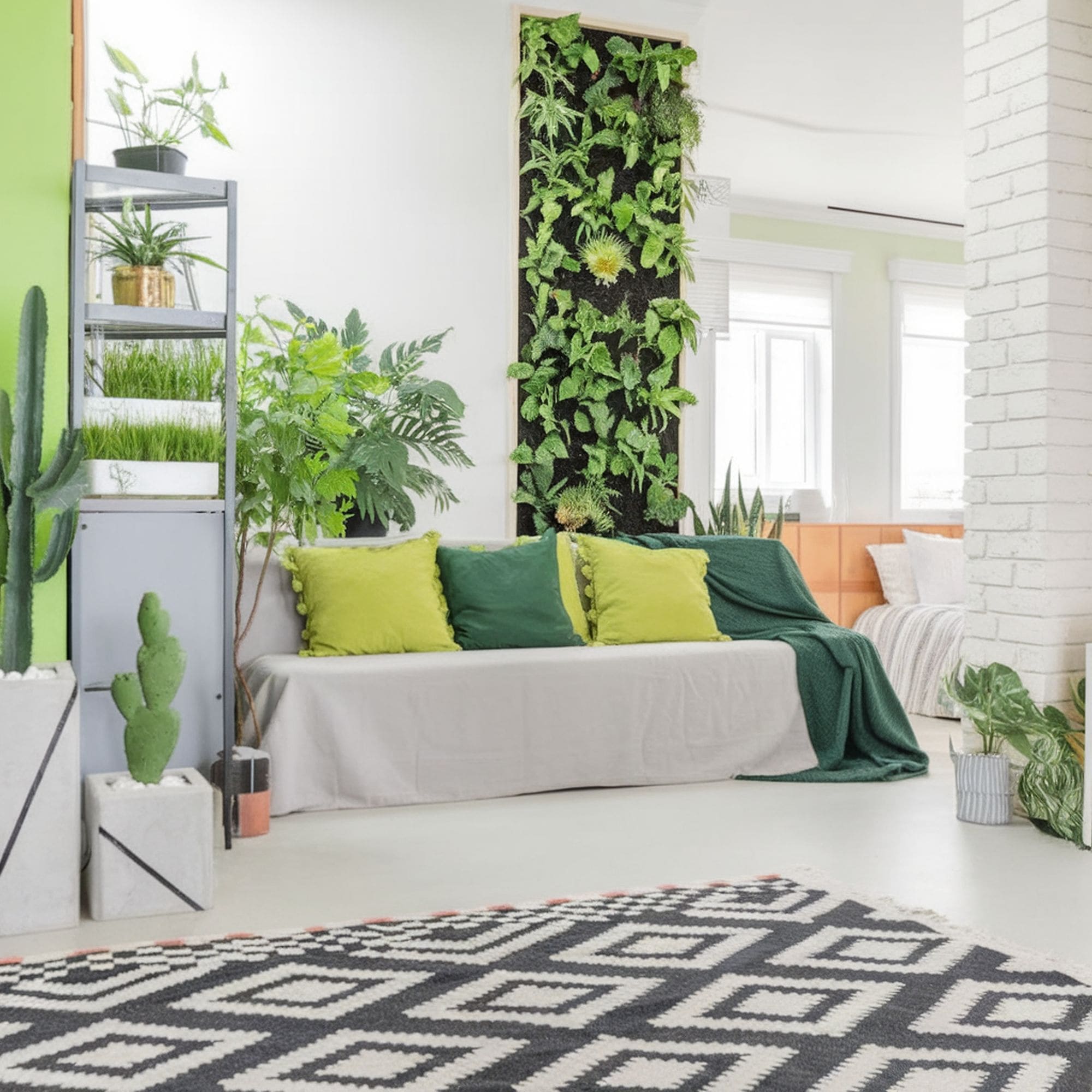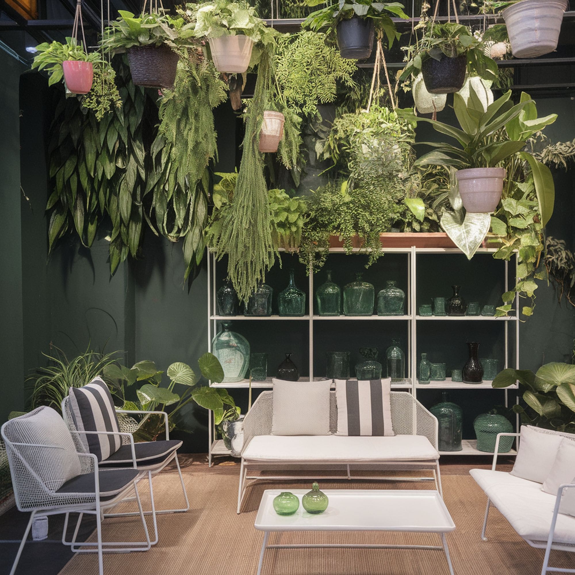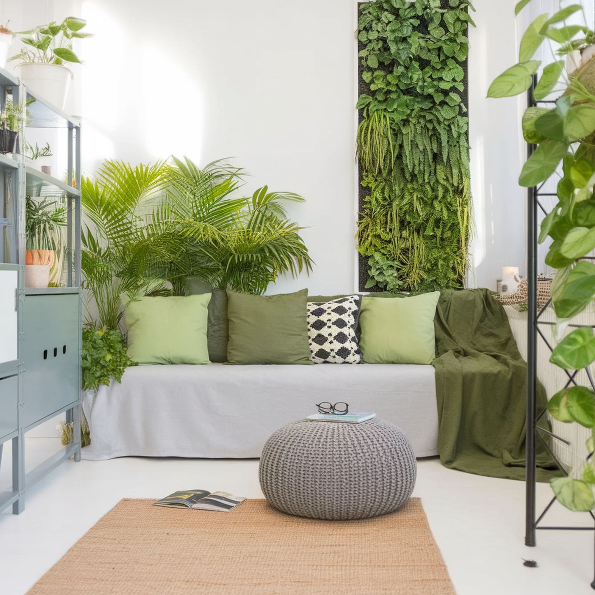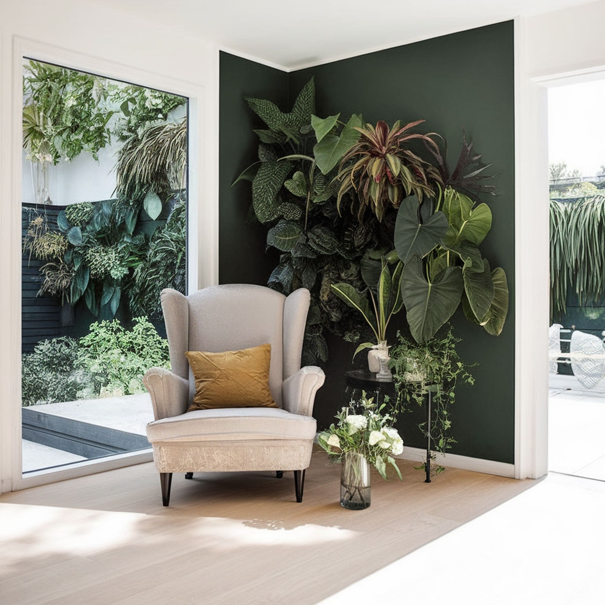 This design is suitable even if you have an outdoor, sunny garden. This corner is used to create a beautiful partially shaded area, so plants that thrive in indirect light can be added to your indoor garden. You can mix and match them as you wish as long as the plants you choose do not require direct sunlight.