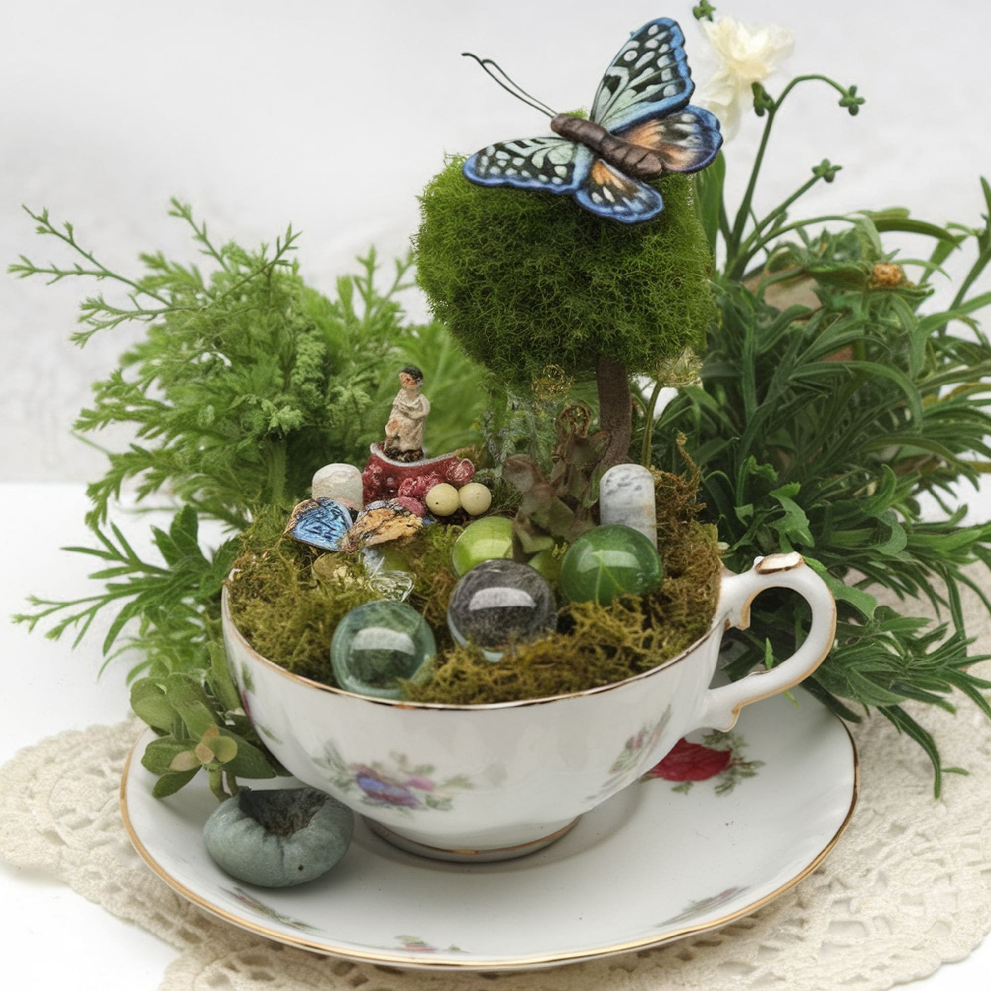 Let your imagination fly and get inspired by this beautiful, minimalistic tiny garden. If you have any significant event coming up, this is the piece that will awe all of your guests. You can opt for succulents and cacti as they thrive in low-water environments. Make your own cup garden, ask your kids to join you, or even let them take care of it!
