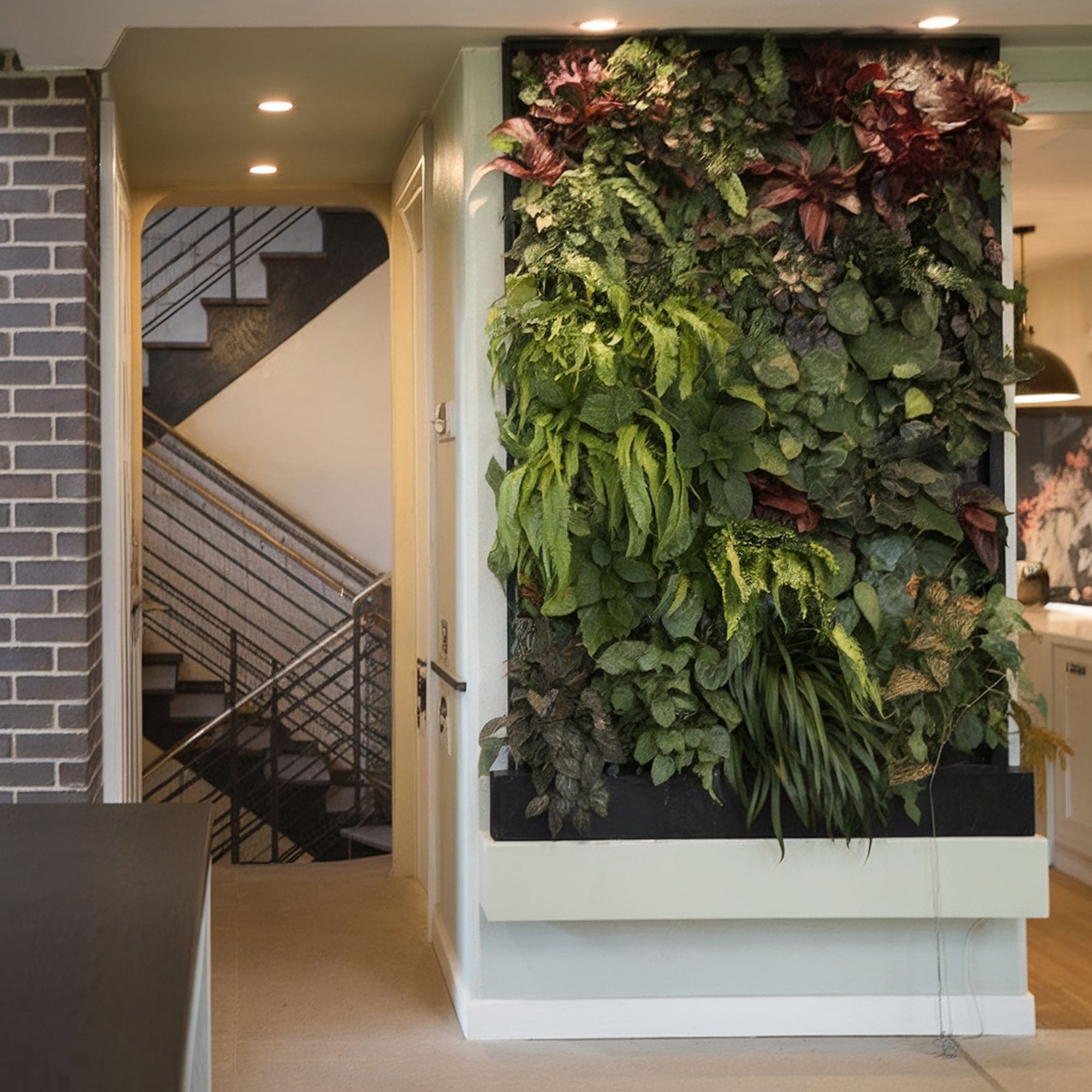 Essentially, you can turn any of your rooms into a beautiful indoor garden. In this example, the owner decided to add a vibrant touch with a wall garden. They are usually easy to care for because there are numerous designs with built-in watering systems. Otherwise, you can still water them easily because most of them use the cascade effect, so you only need to water the top row.