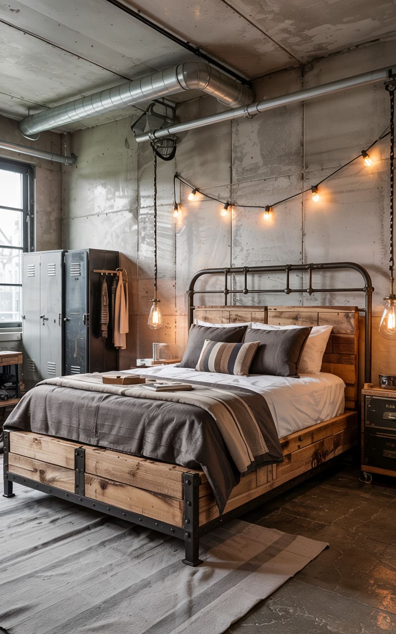 3. Cozy Industrial Bedroom in a Repurposed Factory