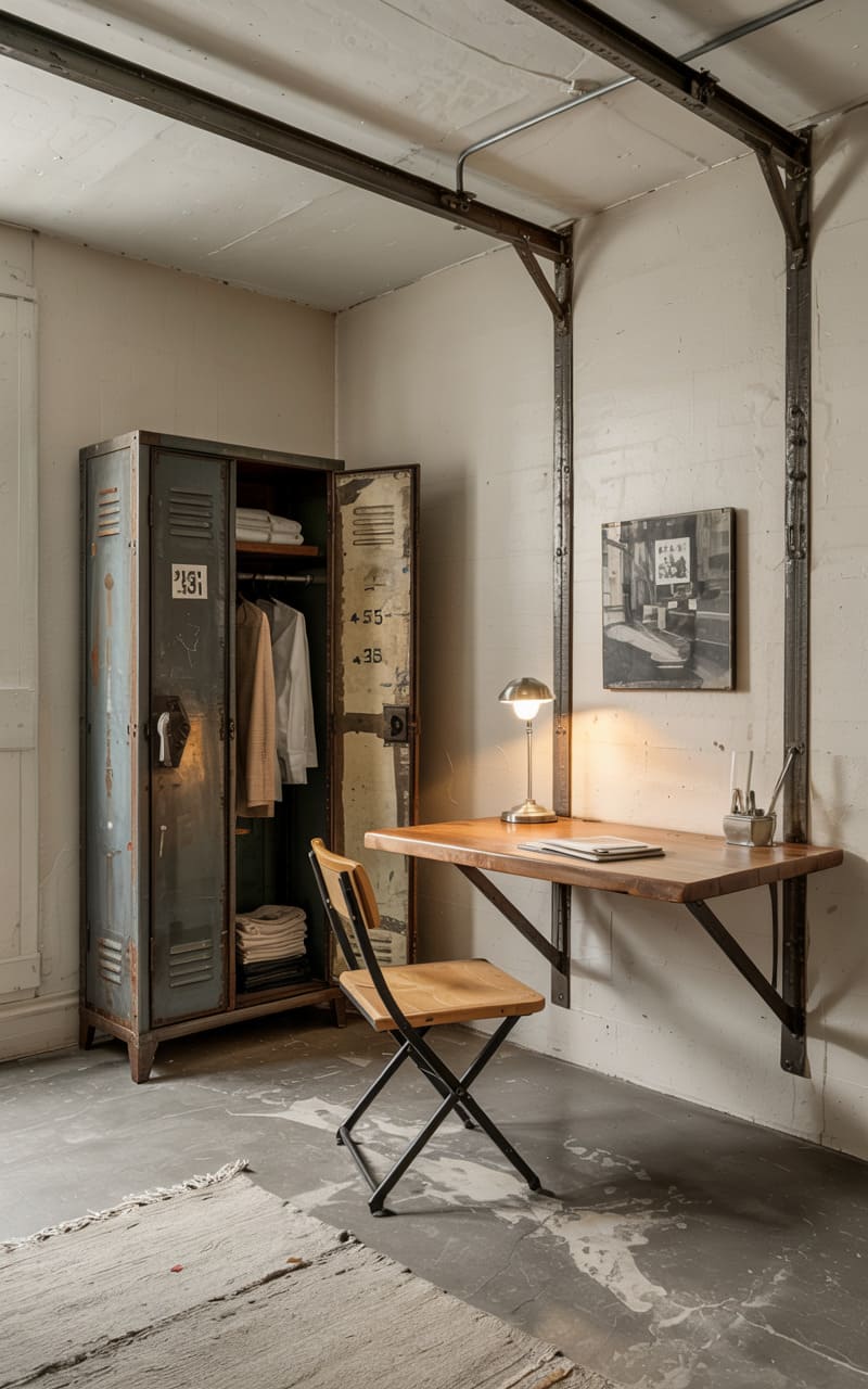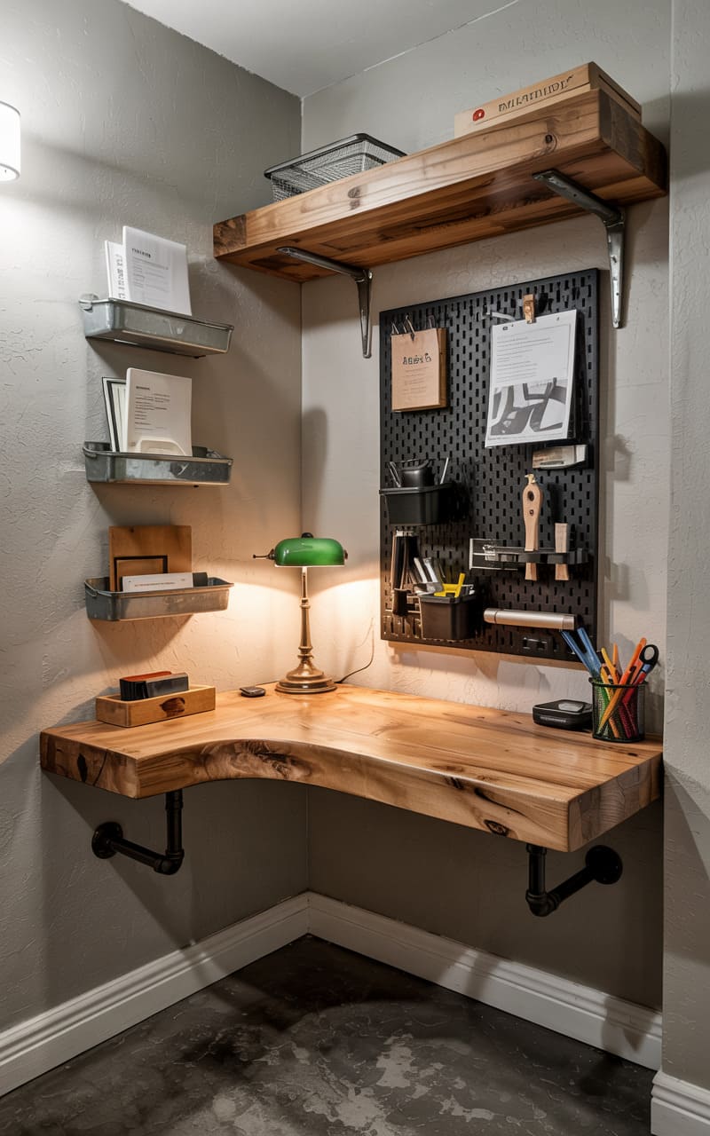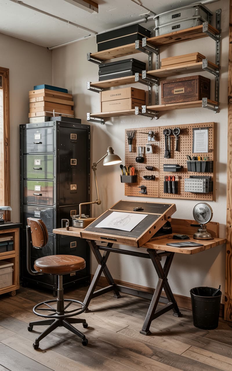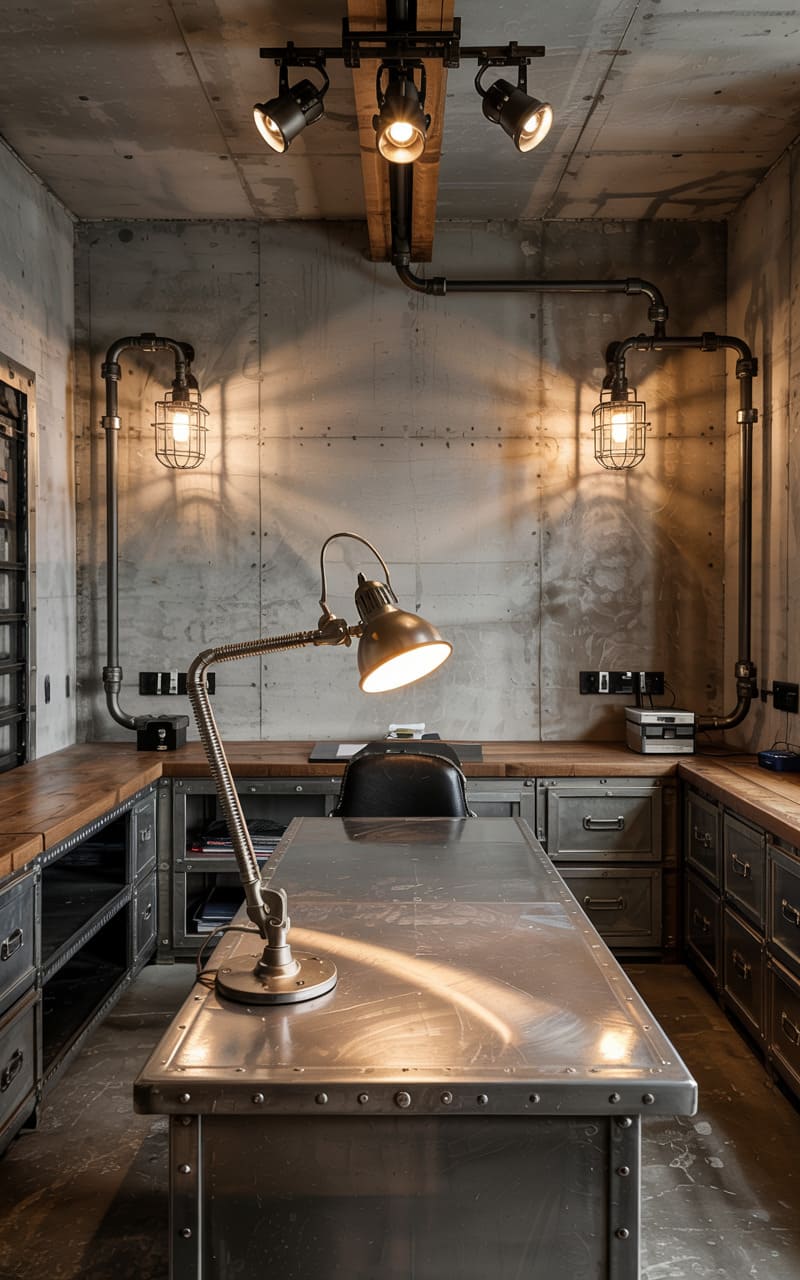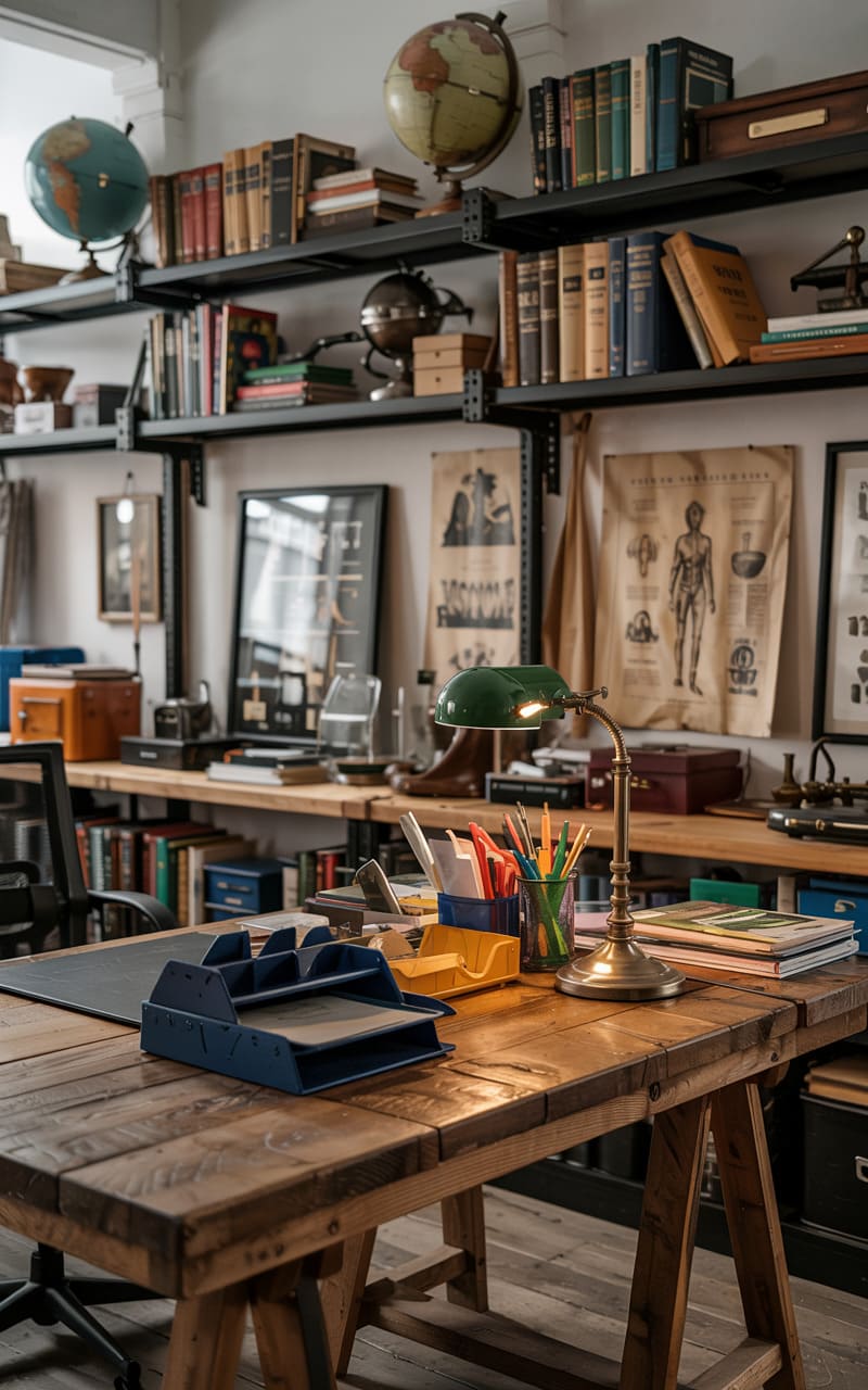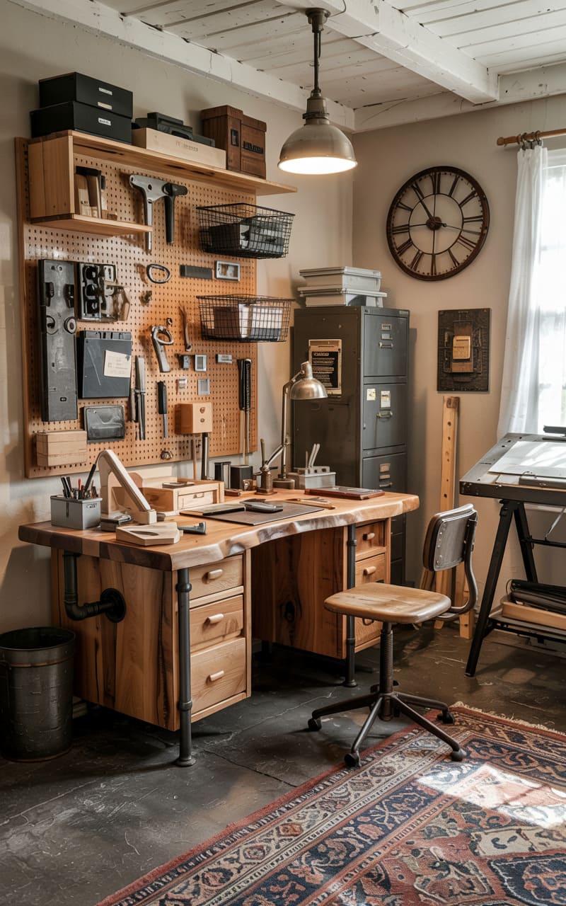 6. Industrial Home Office with Vintage Tools and Raw Materials