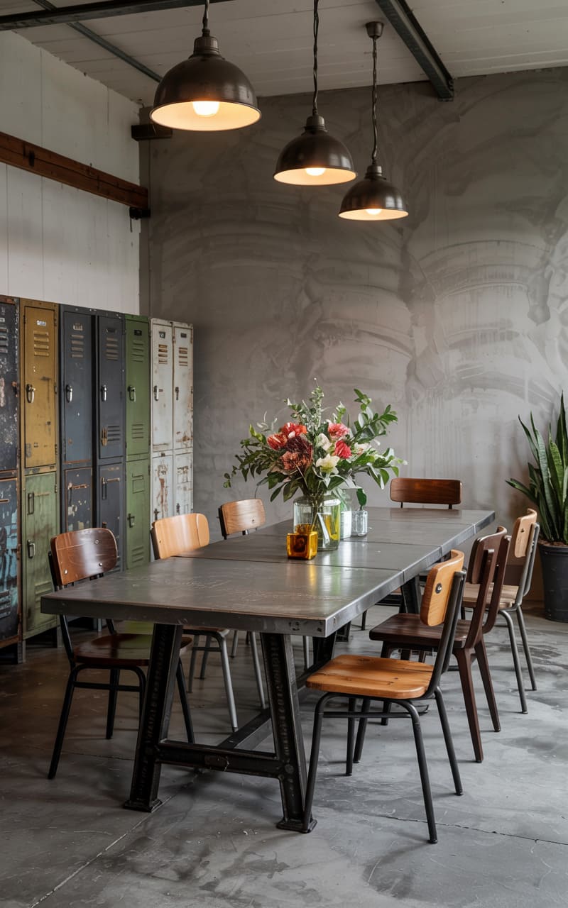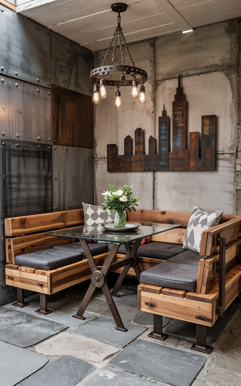 20. Industrial Dining Nook with Concrete and Steel Fusion