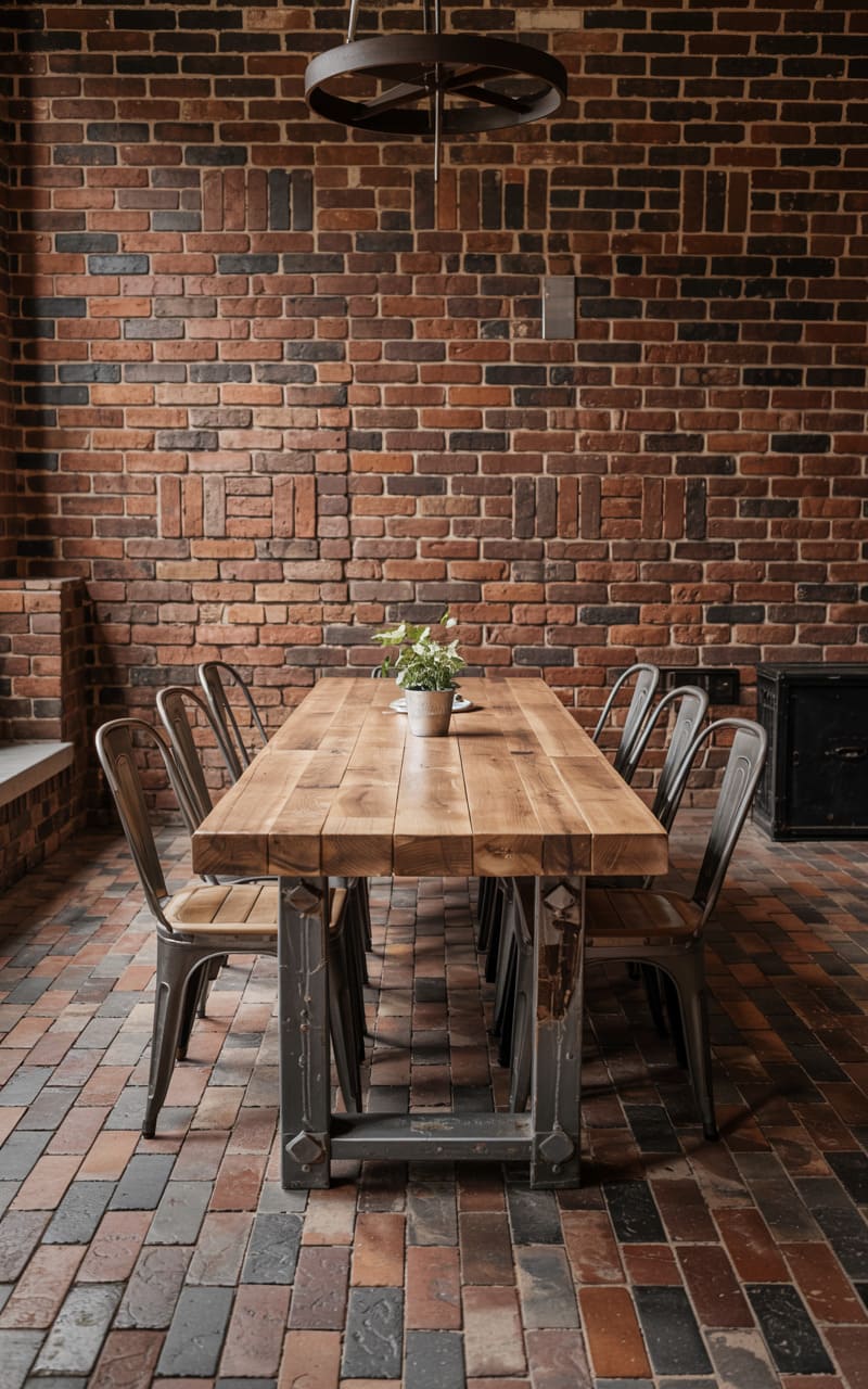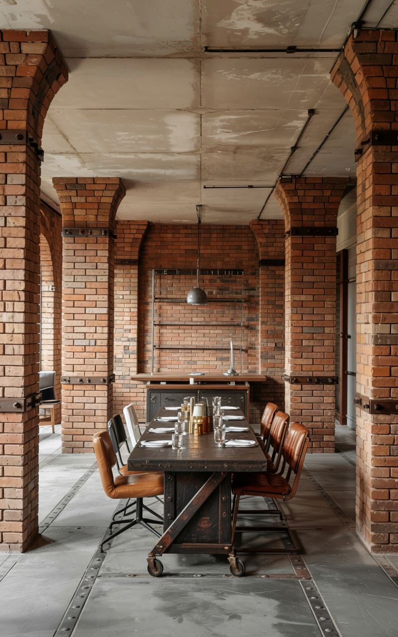 26. Industrial Dining Room with Exposed Load-Bearing Brick Columns
