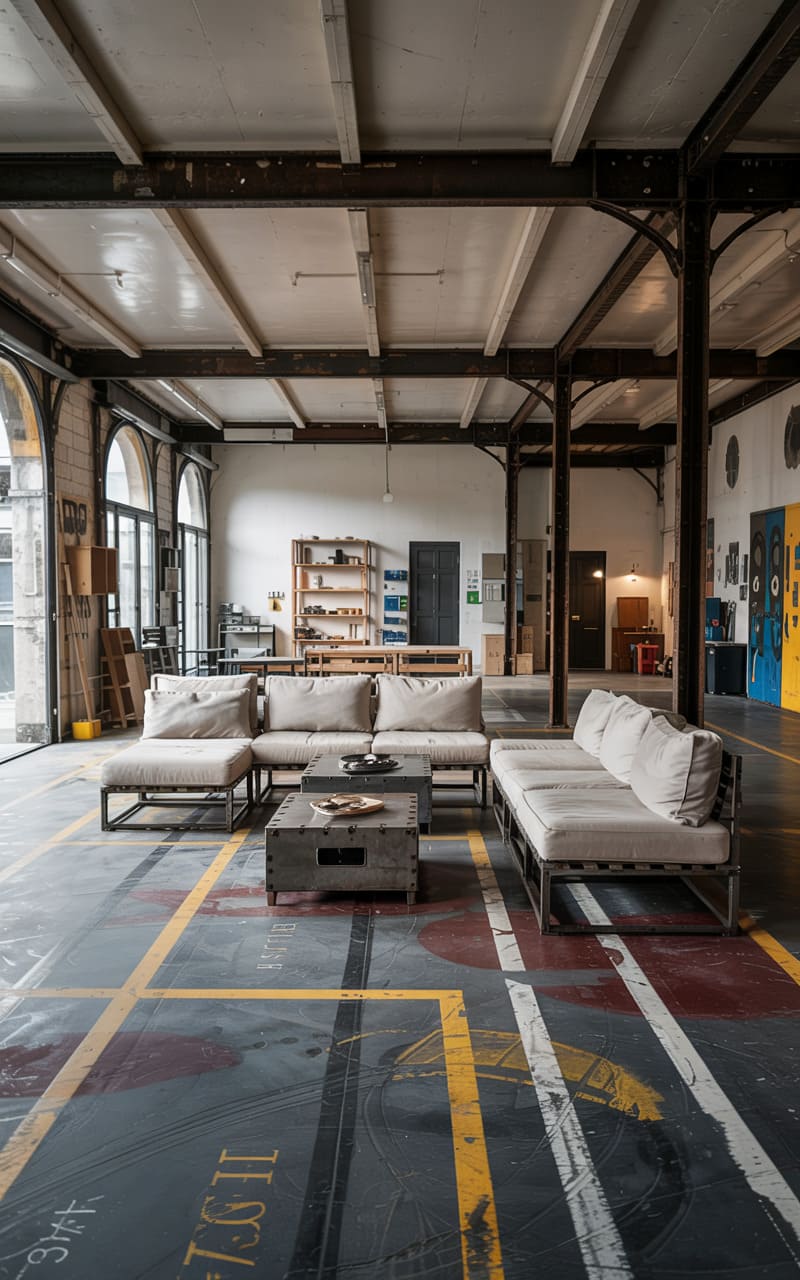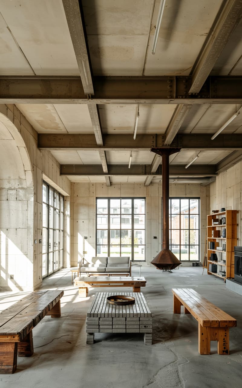 21. Industrial Living Room with Exposed Structural Framework