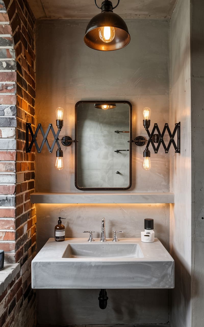 45. Industrial Bathroom with Adjustable Scissor Arm Wall Lights