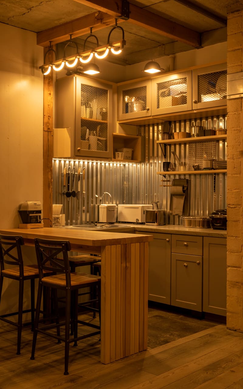 17. Industrial Kitchenette with Welded Steel and Black Tile