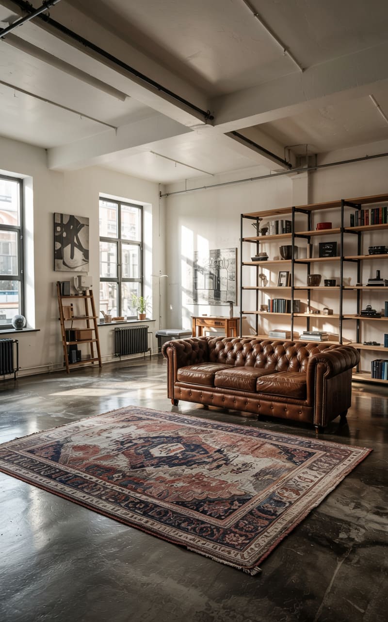 190. Industrial Loft Studio with Collected Decor, Textural Contrast, and Rich Color Layers