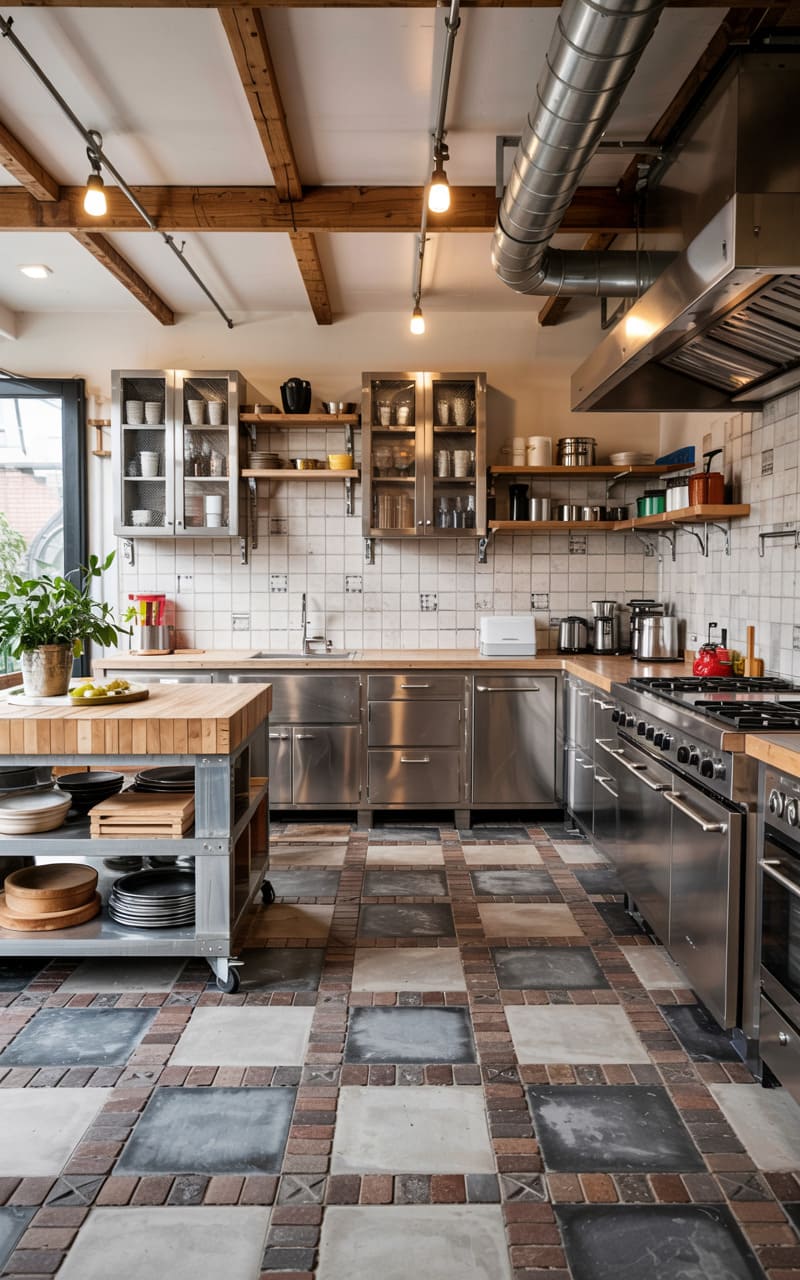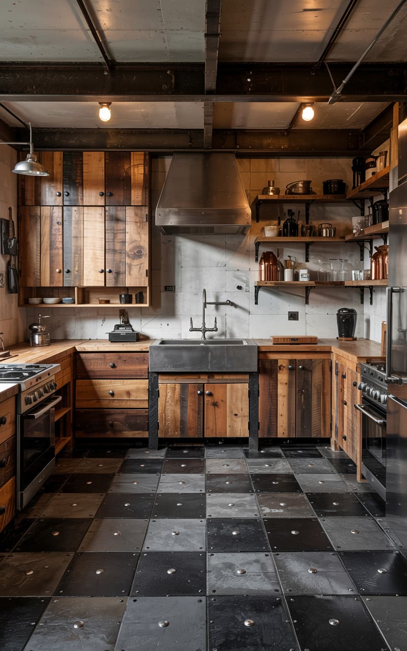 2. Industrial-Style Urban Kitchen with a Rustic Edge