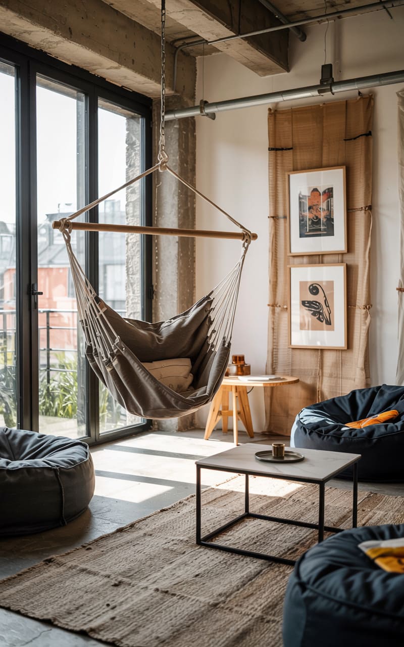 4. Industrial Bohemian Living Space with Vintage Decor
