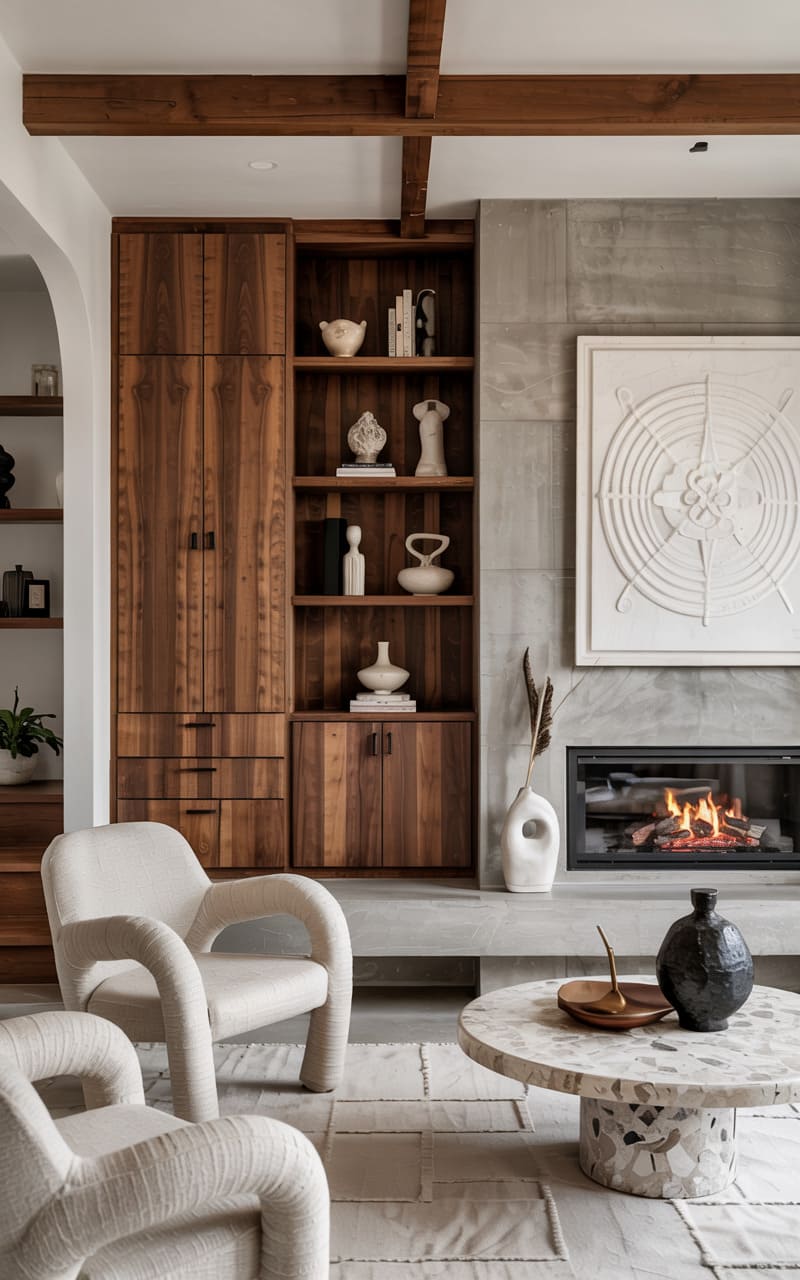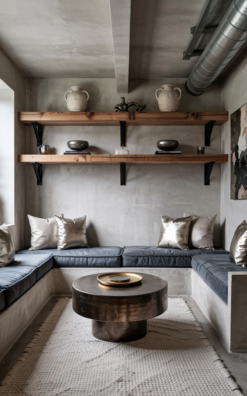 18. Industrial Living Room with Concrete and Oxidized Copper Accents
