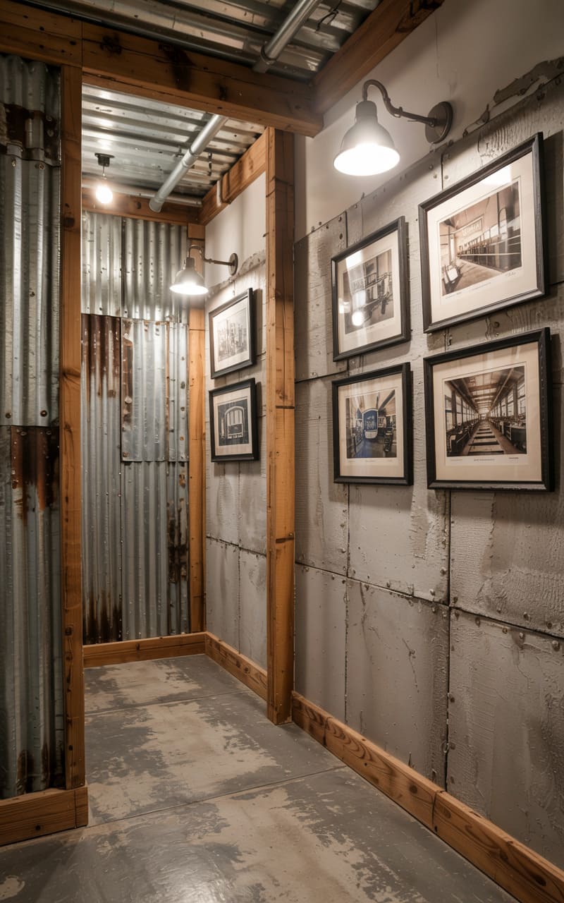16. Industrial Hallway Gallery with Riveted Metal Panels