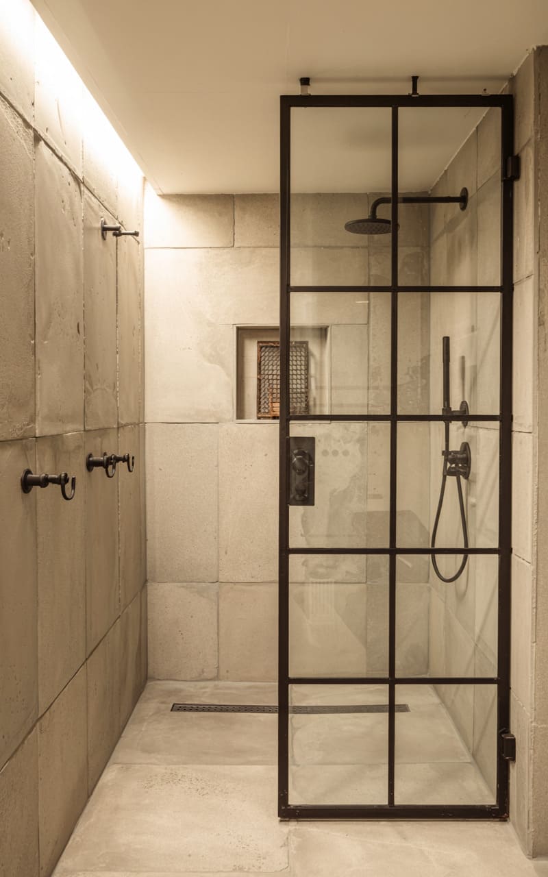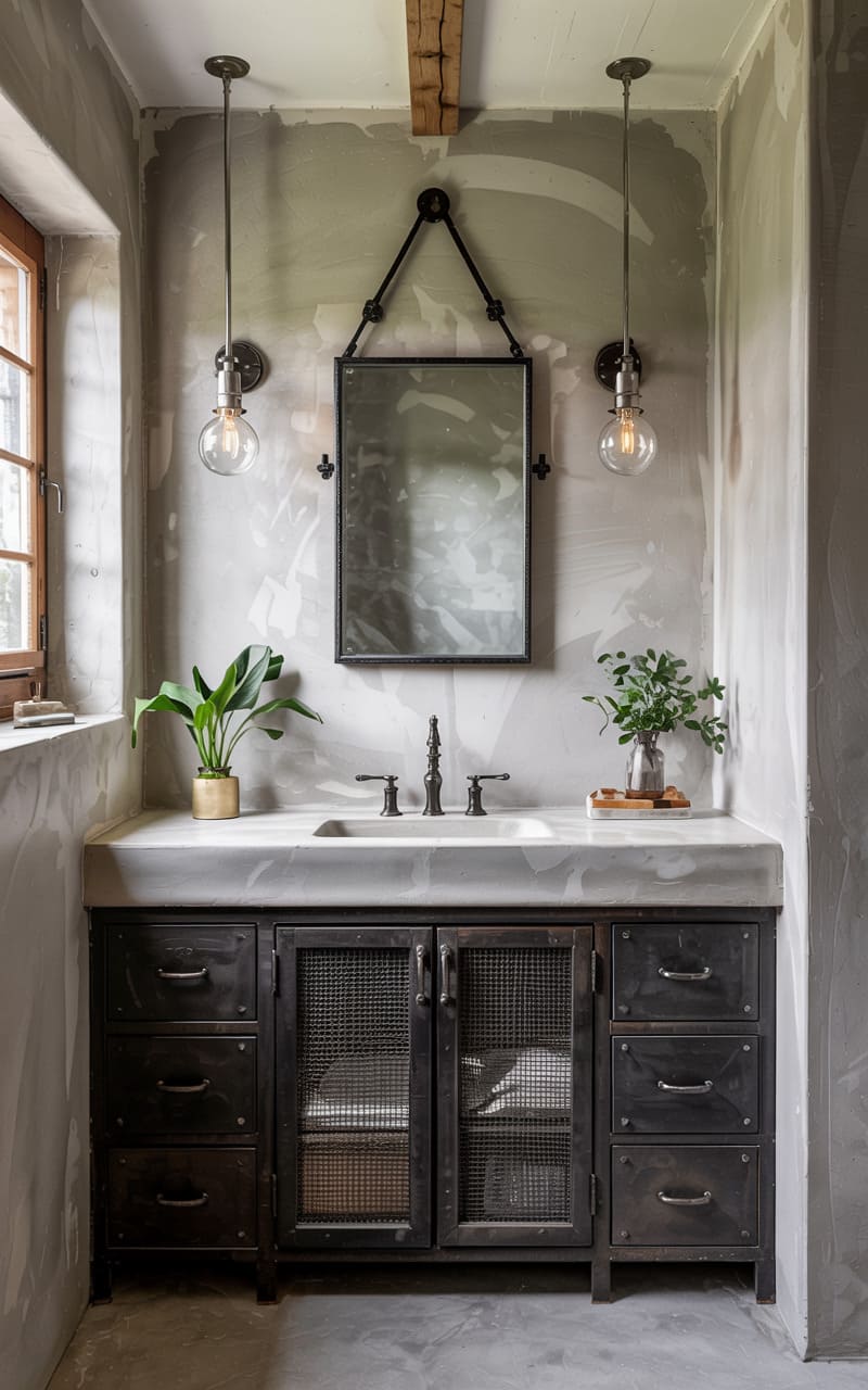 15. Industrial Zen Bathroom with Brutalist Vibes