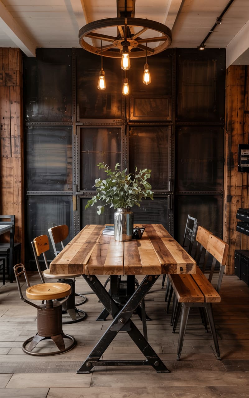 175. Minimalist Industrial Dining Room with Black Steel Table and Terracotta Decor Accents