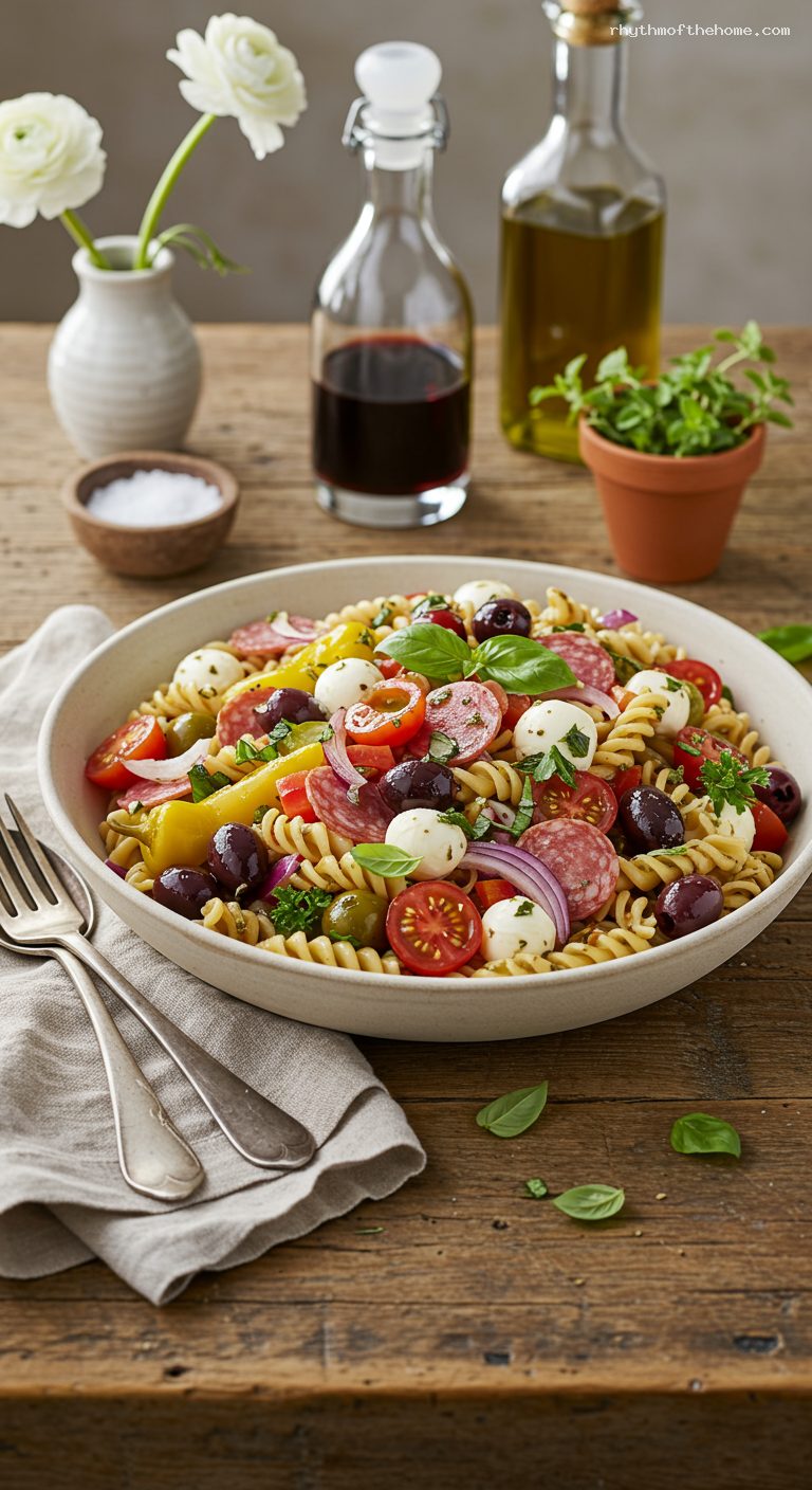 - A punchy oregano–red wine vinaigrette that clings perfectly to rotini’s ridges.