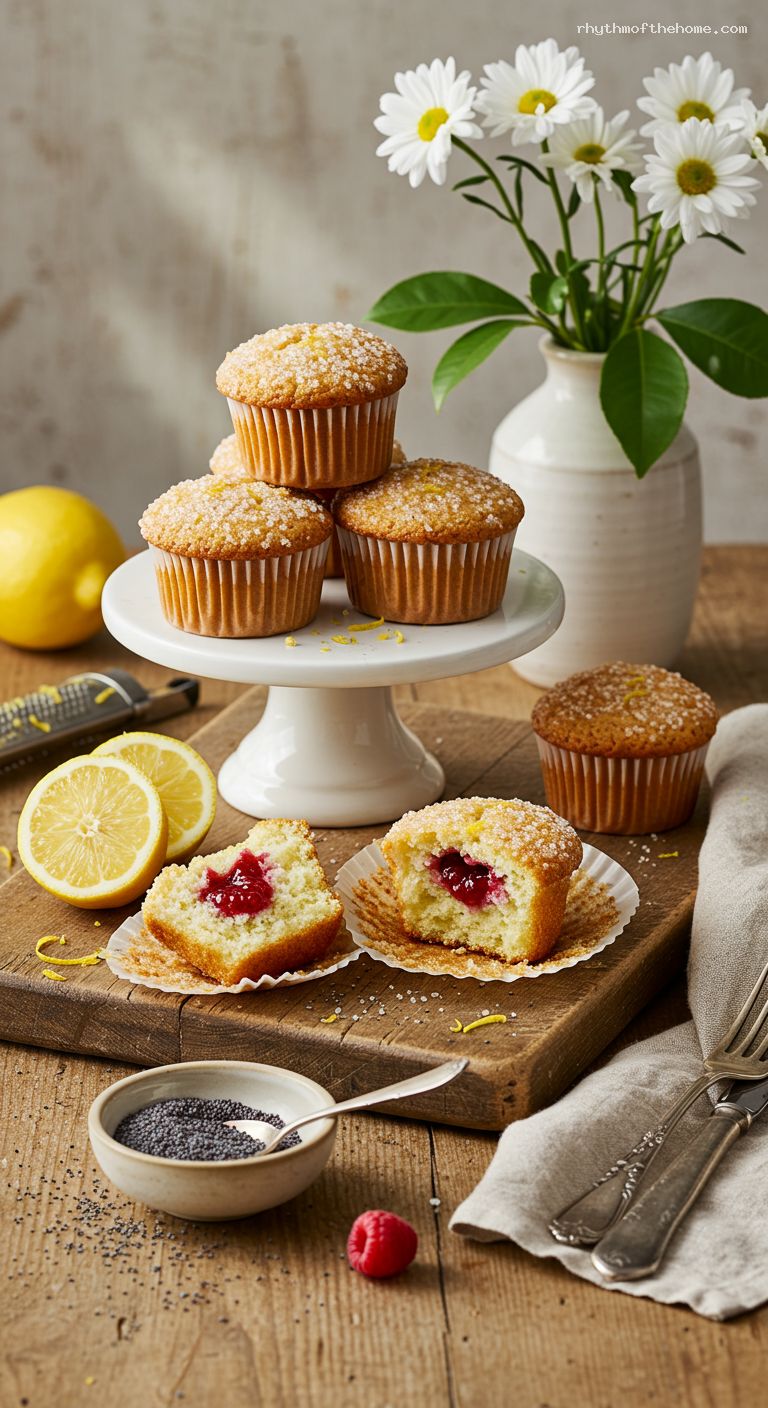 Lemon Poppy Seed Yogurt Muffins with Raspberry Jam Center